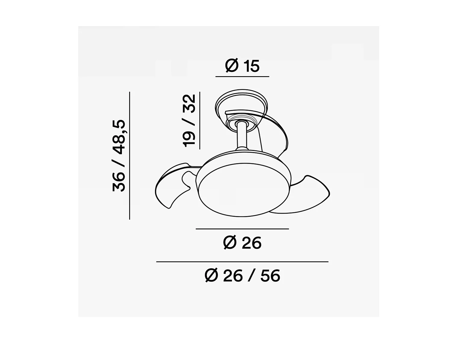 Ventilateur plafond Perenz 7169B CT blanc d.56 cm, 3 pales rétractables, moteur DC 24W, 6 vitesses, lumière intégrée