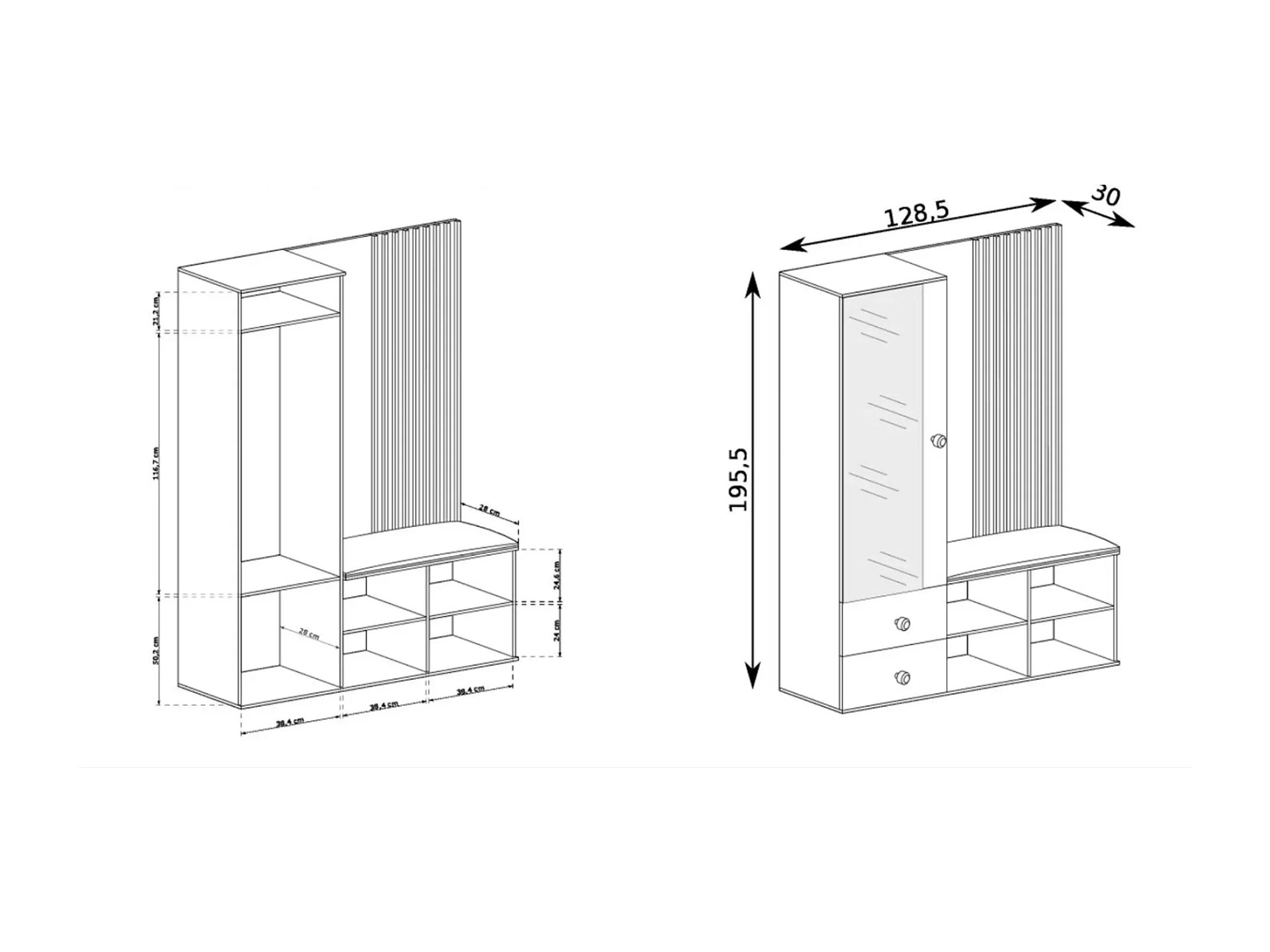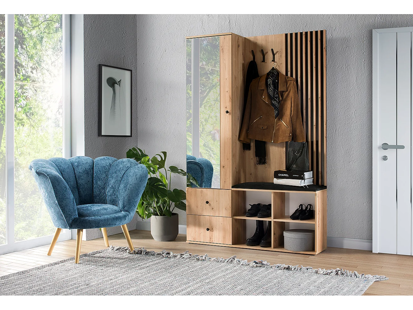 MINIO go for it, ensemble de garde-robe MALI, avec miroir, chêne artisan/noir
