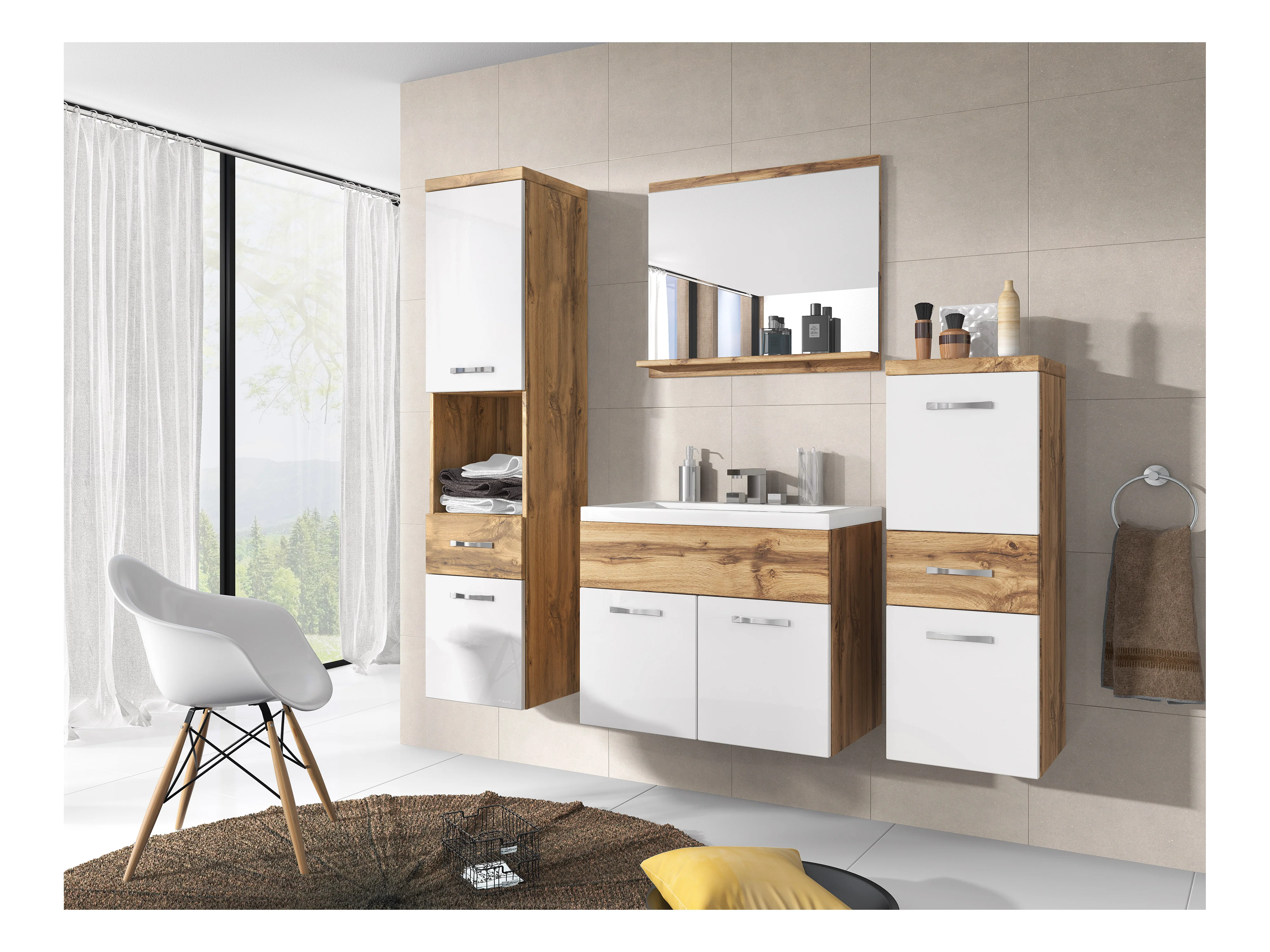 MINIO go for it, Meuble de salle de bain ALBECK en couleur chêne wotan / blanc brillant