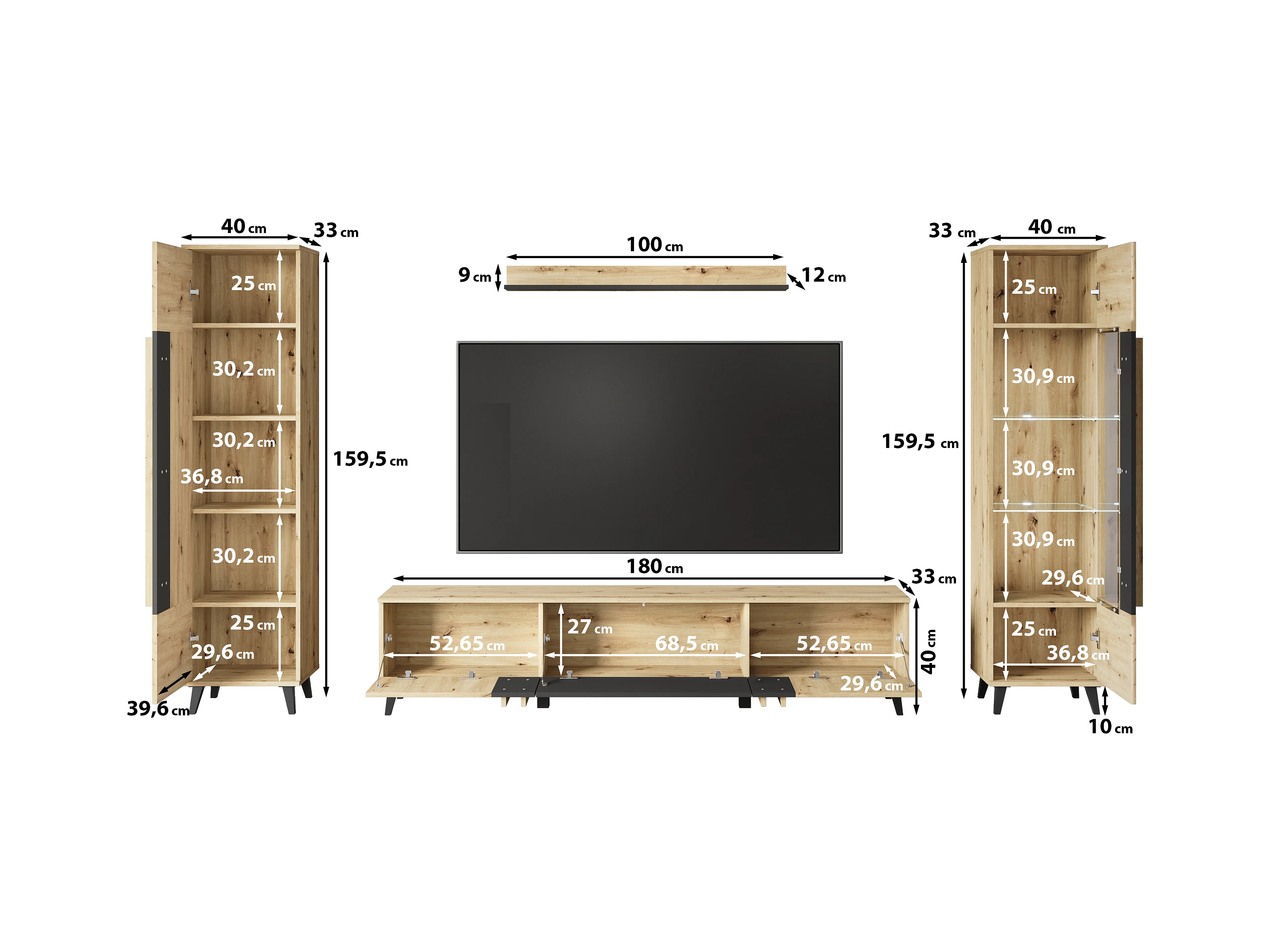 Set Naturale salle à manger, meuble auxilier, buffet-meuble TV 160cm chêne noir