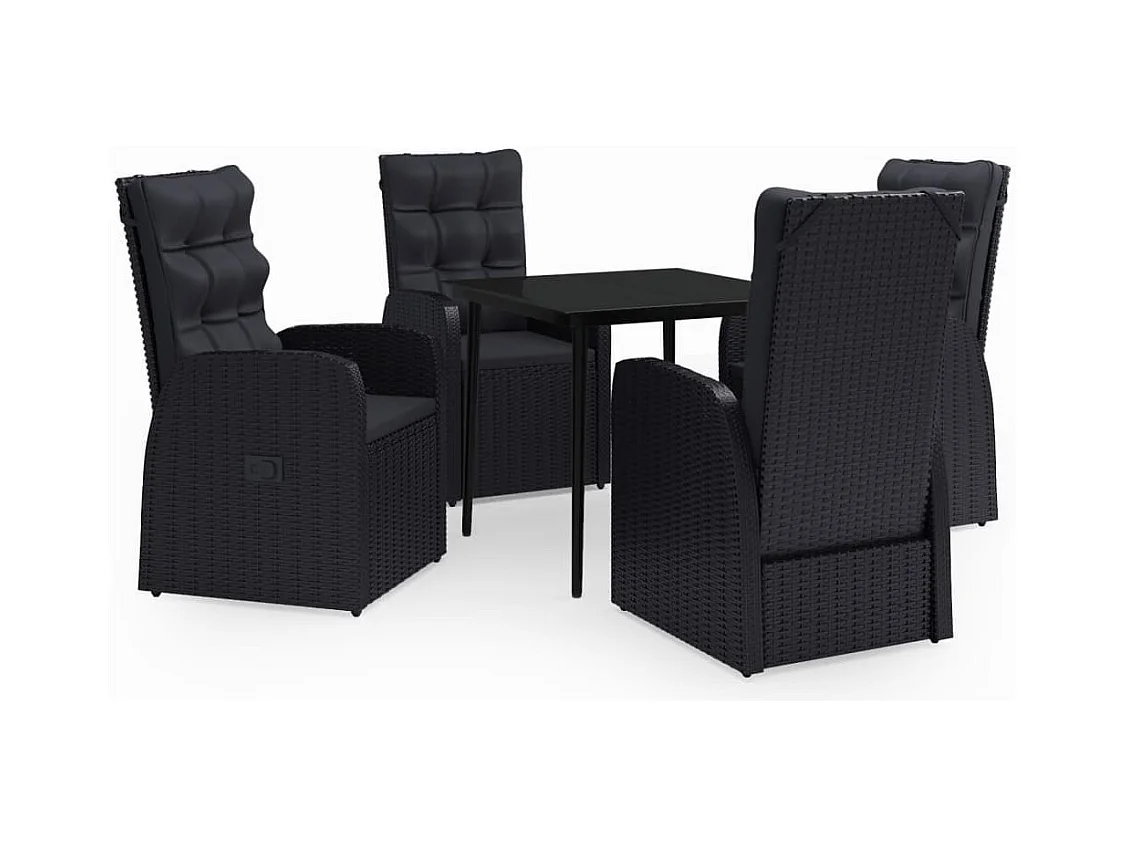 Mirella Ensemble à manger de jardin avec coussins 5 pcs Noir