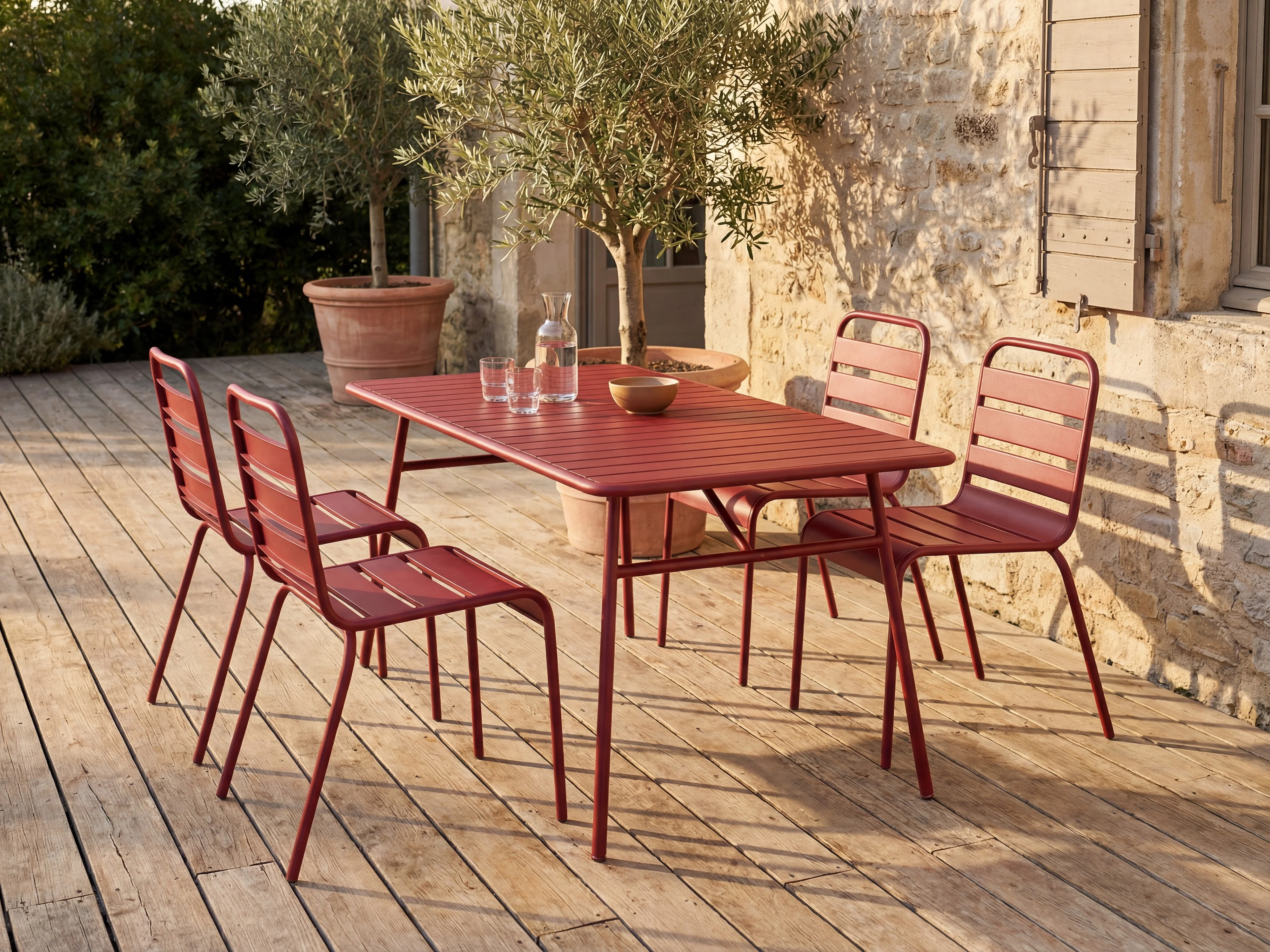 Salle à manger de jardin en métal - une table L.160 cm et 4 chaises empilables - Rouge - MIRMANDE de MYLIA