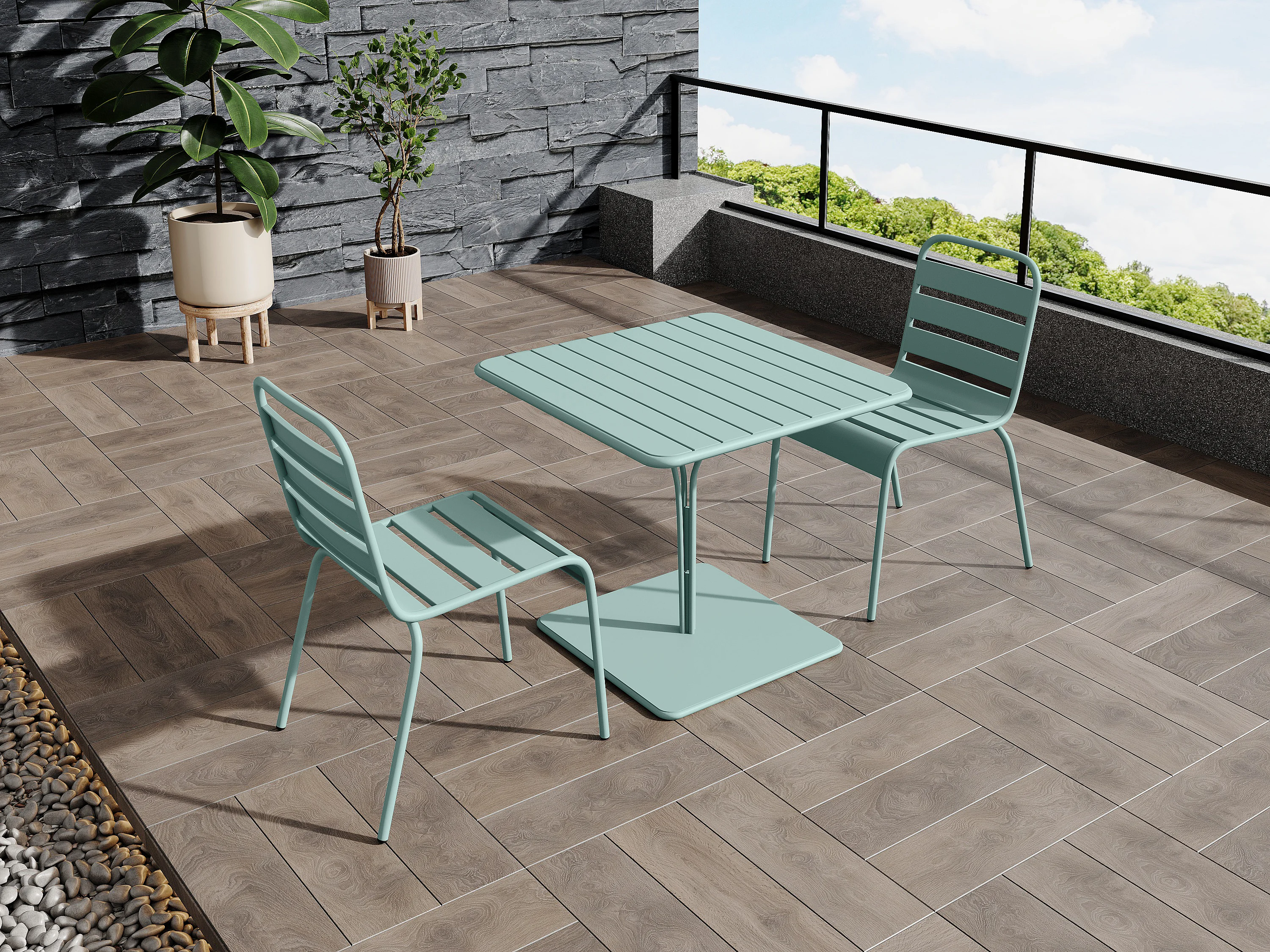 Table de jardin carrée en métal vert cactus - Palavas