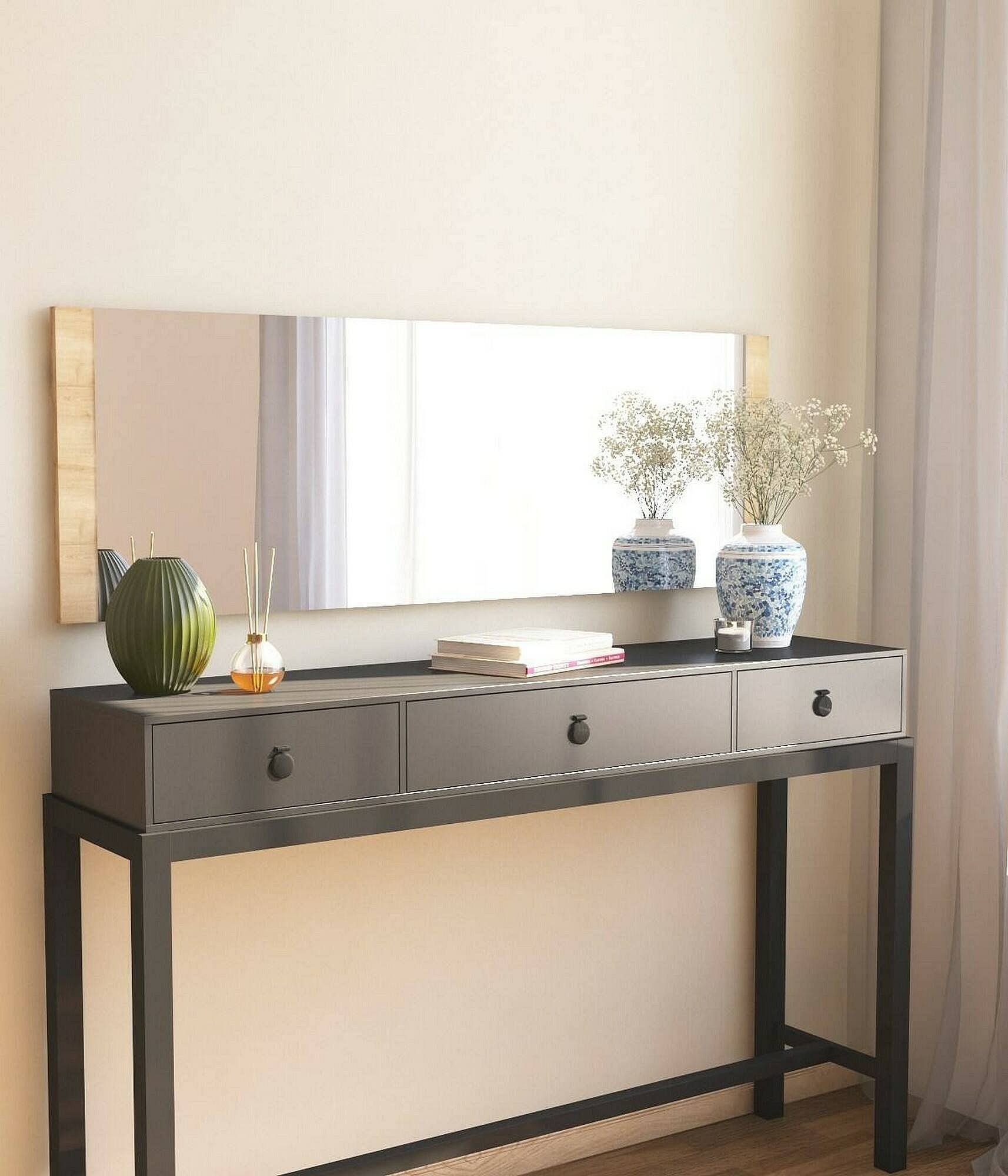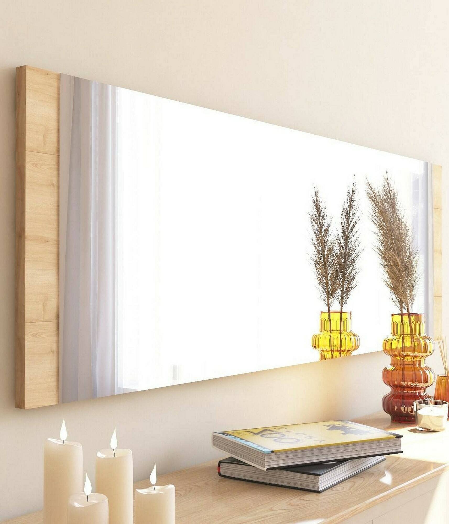 Miroir Acamar, Verre miroité, Objet d'ameublement mural, Décoration avec miroir, 40x2h120 cm, Chêne