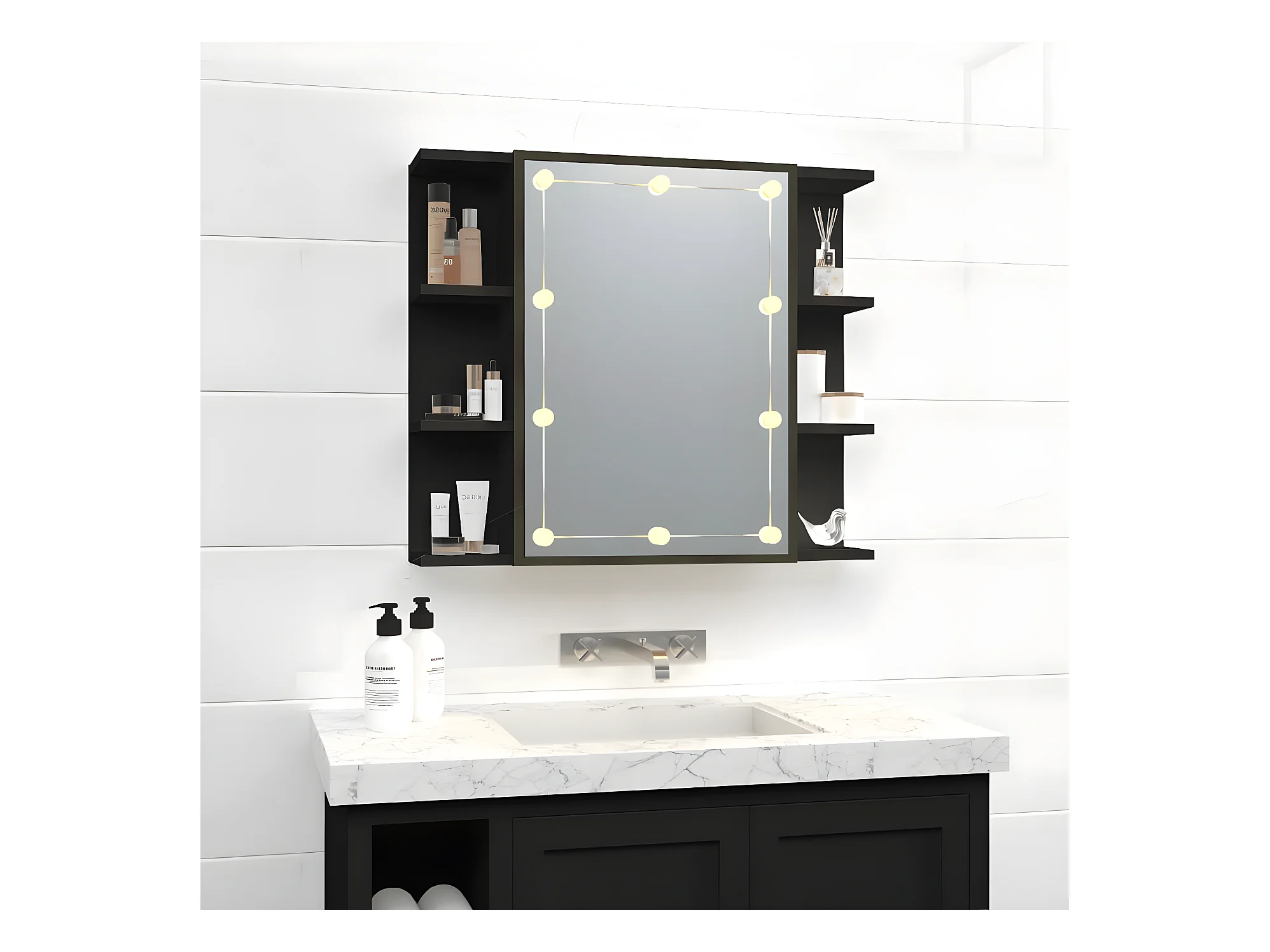 Miroir avec LED noir 90x31,5x62 cm WVGQ6323