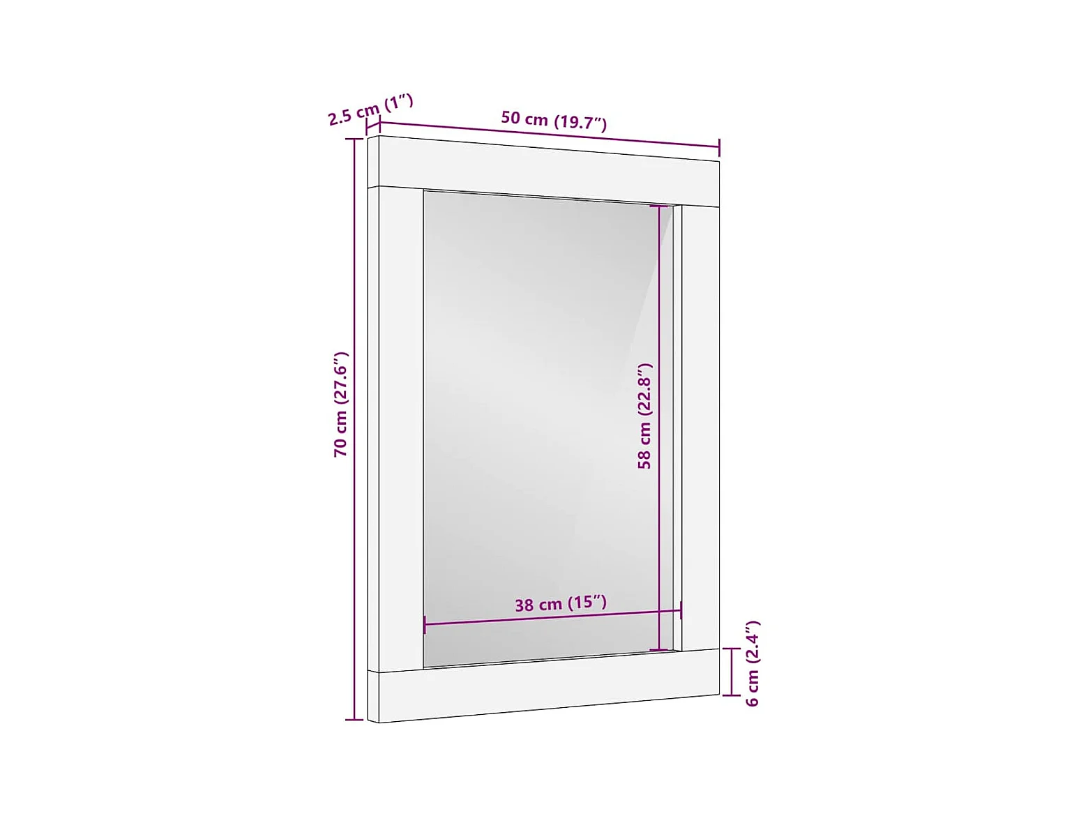 Miroir avec miroir Blanc 57 x 70 x 3 cm bois de manguier massif