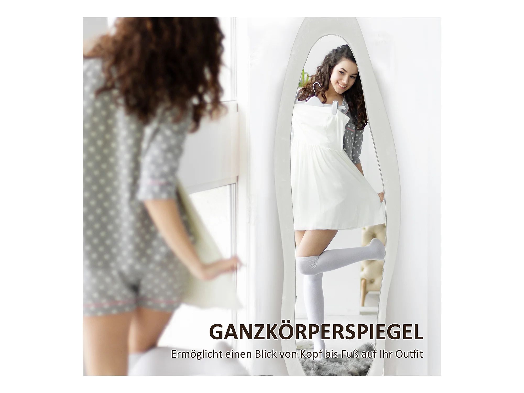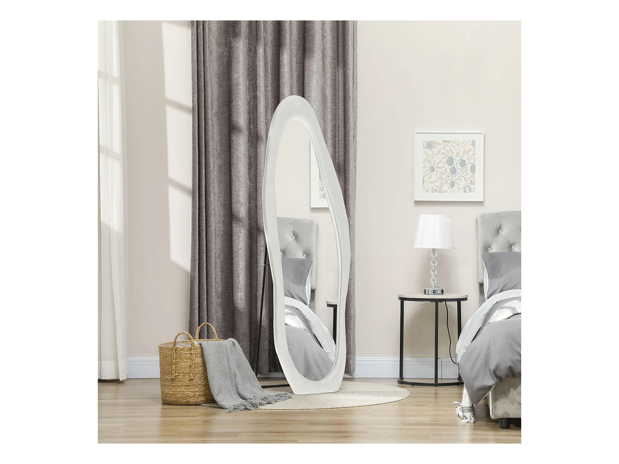 Miroir corporel sur pied, design ondulé, verre, blanc, (50x4x160 cm)