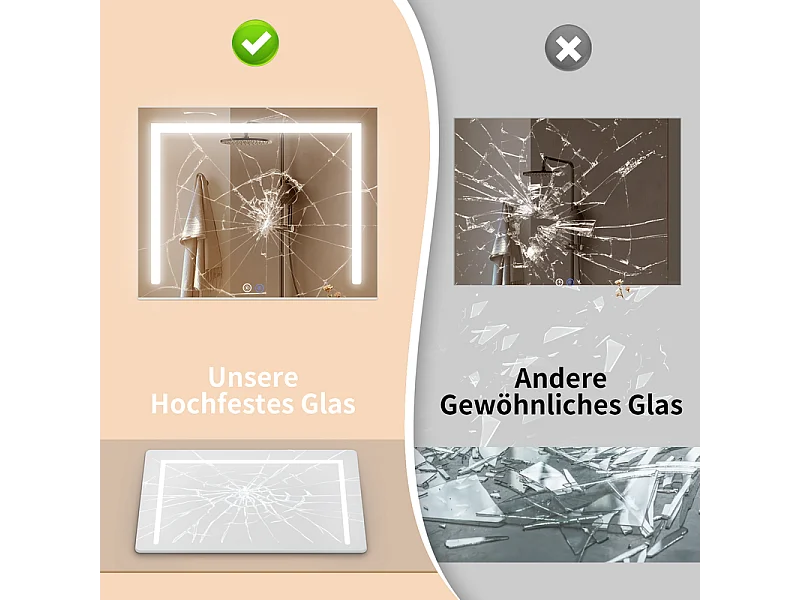 Miroir de maquillage NETTLIFE avec éclairage, 80 x 60 cm, miroir de coiffeuse avec lumière, LED tactile à intensité variable, miroir de courtoisie