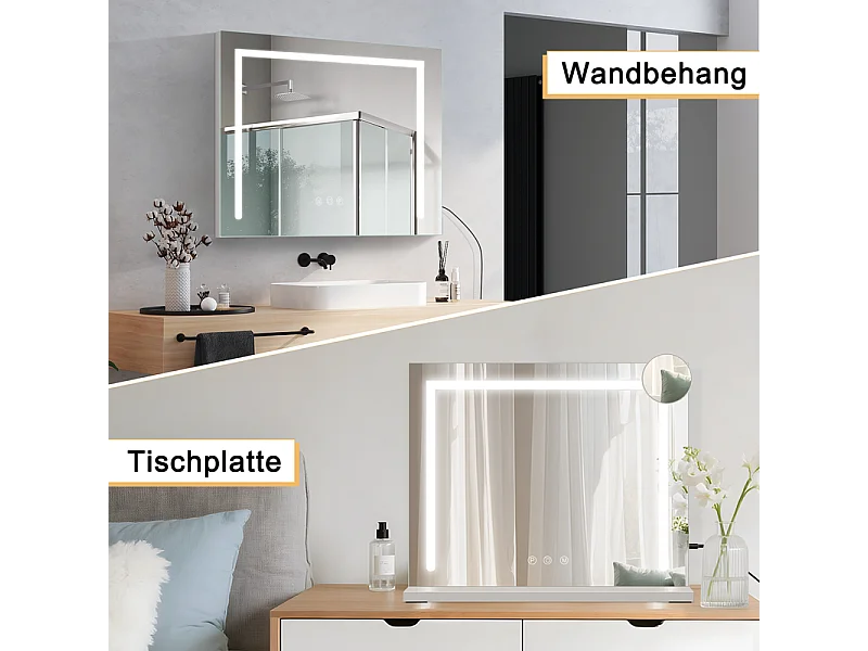 Miroir de maquillage NETTLIFE avec éclairage, 80 x 60 cm, miroir de coiffeuse avec lumière, LED tactile à intensité variable, miroir de courtoisie