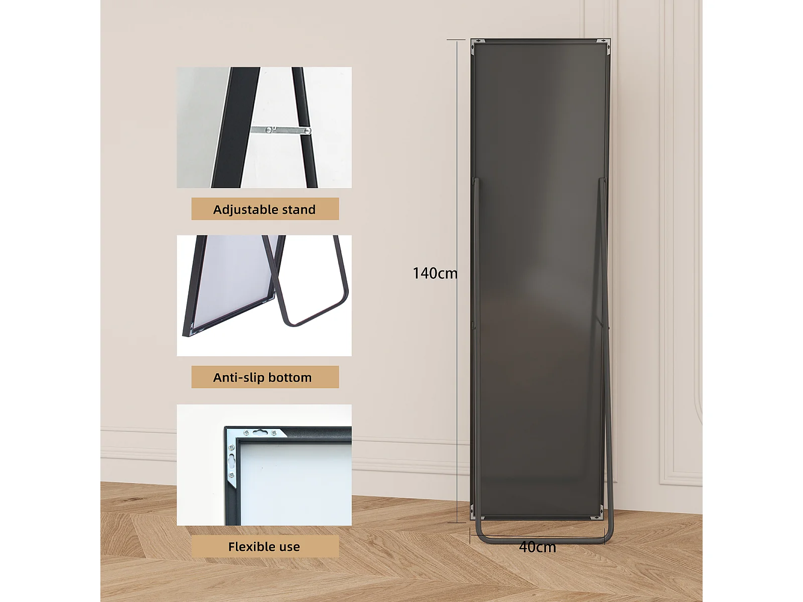 Miroir de maquillage rectangulaire en verre trempé, cadre en aluminium noir, 1400x400 mm, design moderne élégant pour chambre ou salle de bain