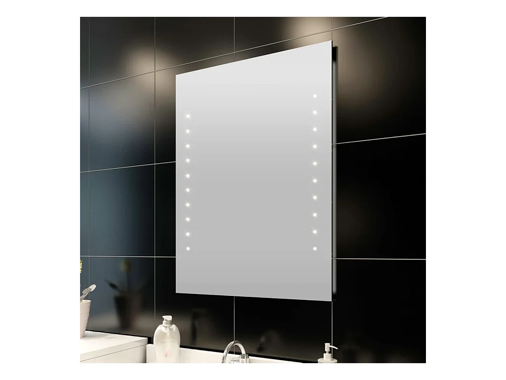 Miroir de salle de bain lumineux rectangulaire avec LED à luminosité variable et 4 touche sensitive - anti buée - 80x60cm