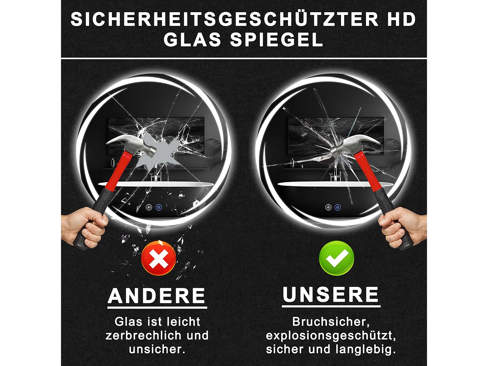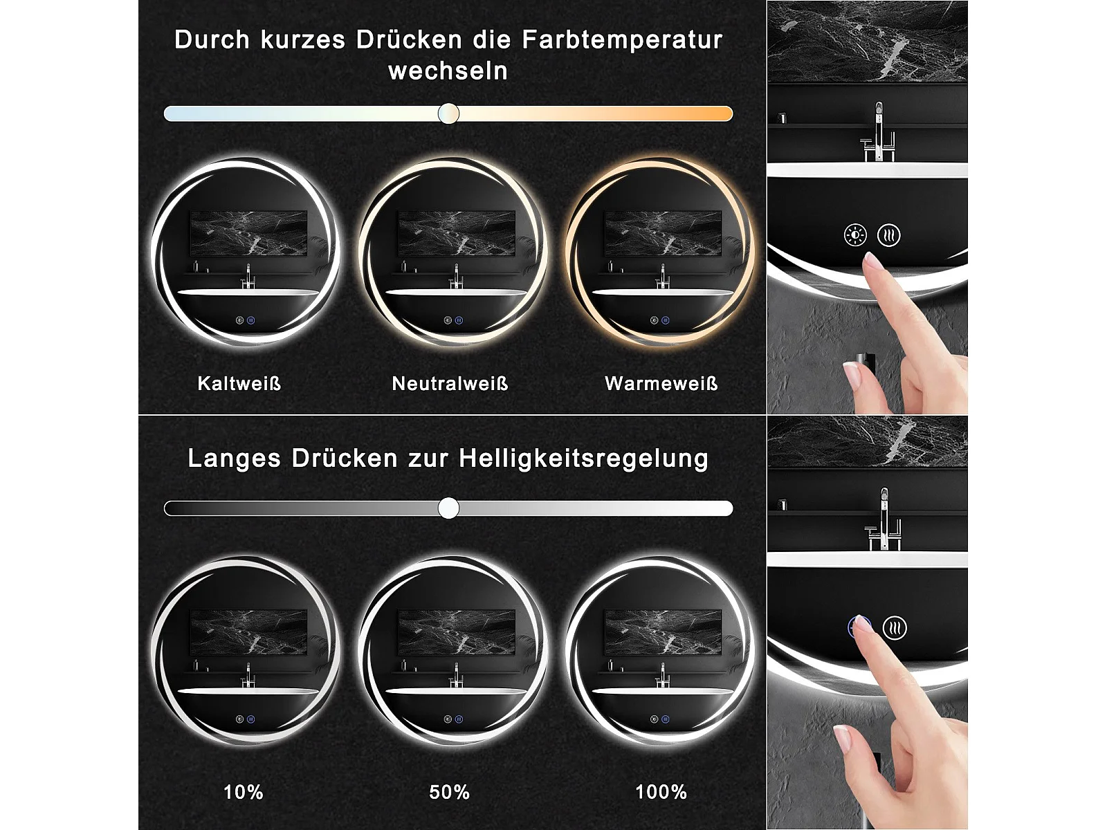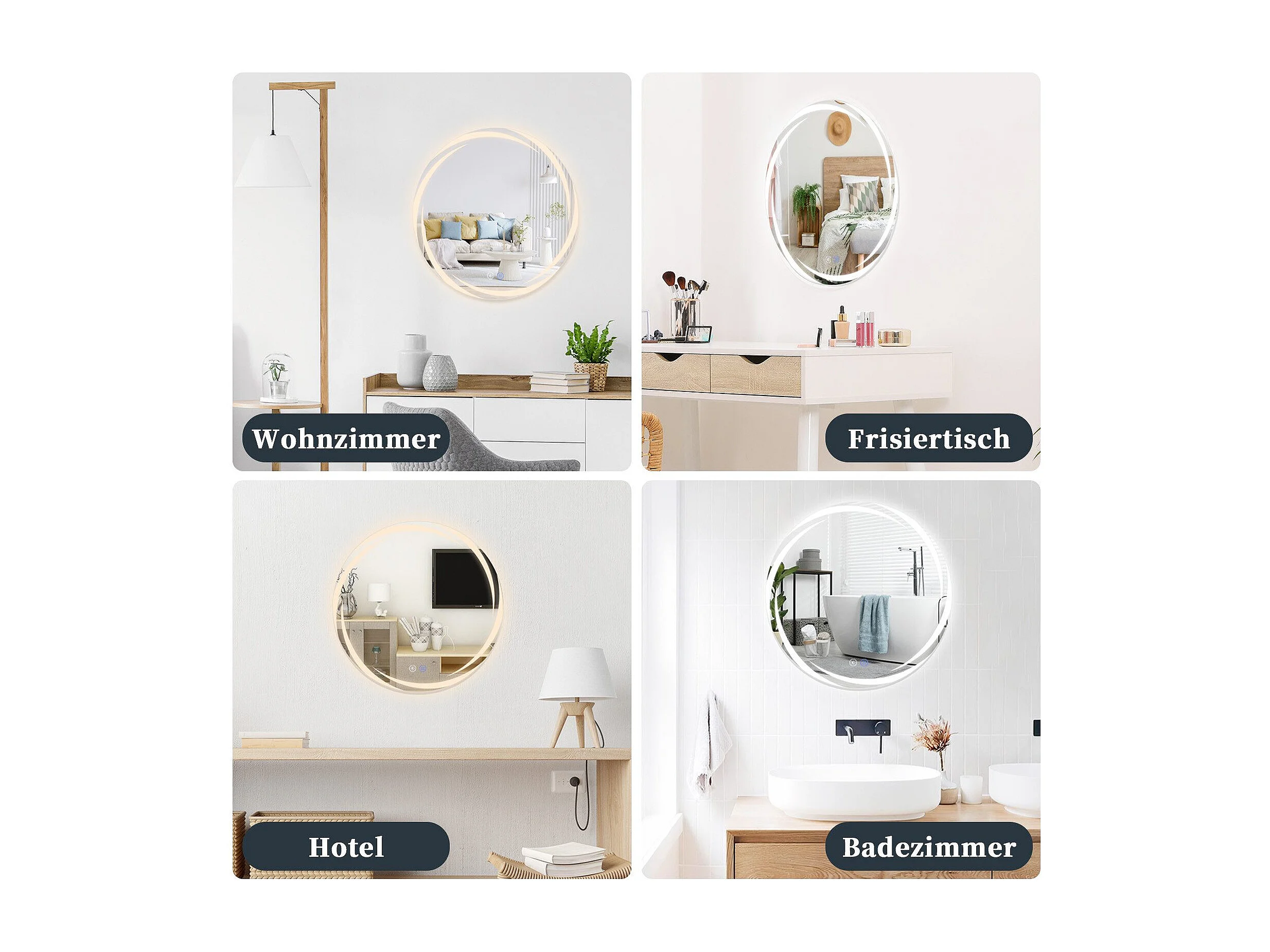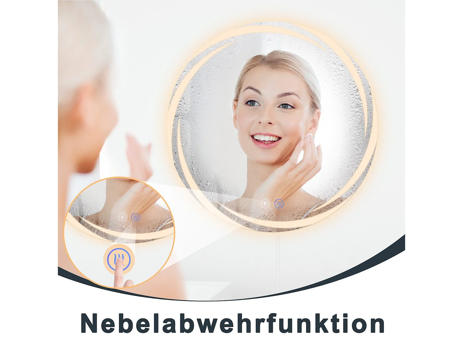 Miroir de salle de bain NETTLIFE avec éclairage, miroir de salle de bain rond à LED, miroir de salle de bain rond IP44 de 60 cm avec fonction tactile