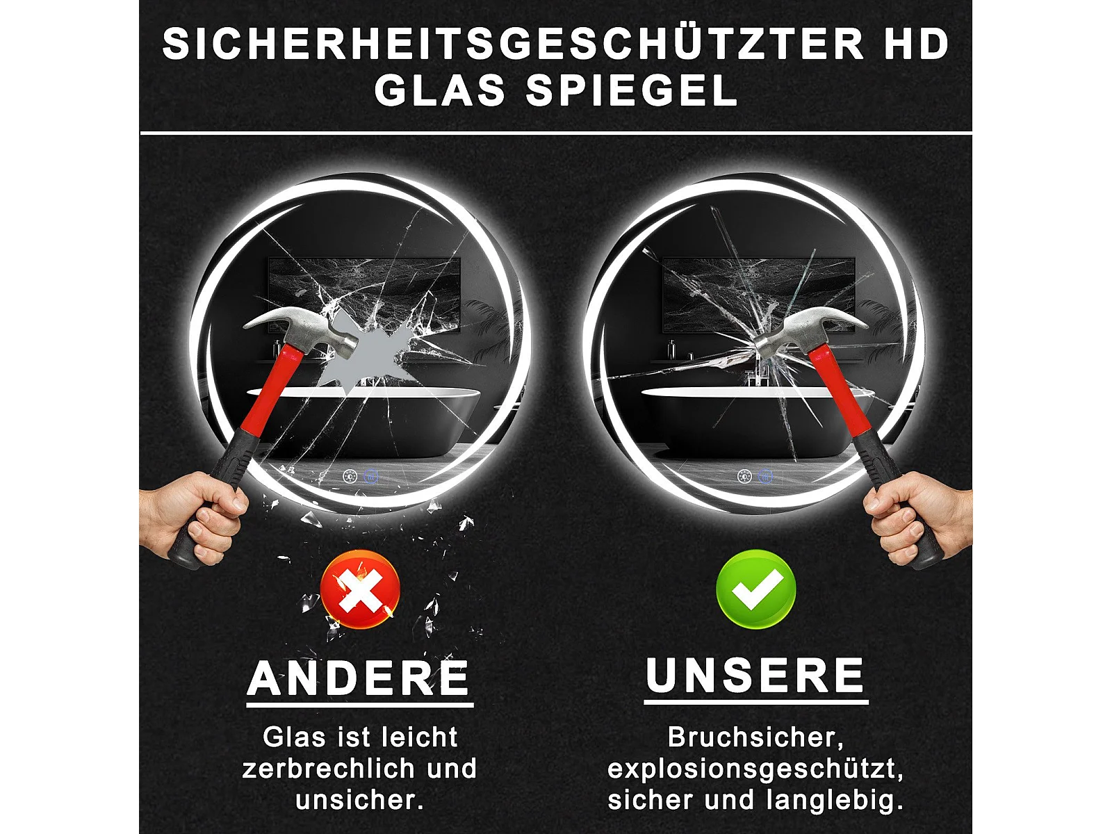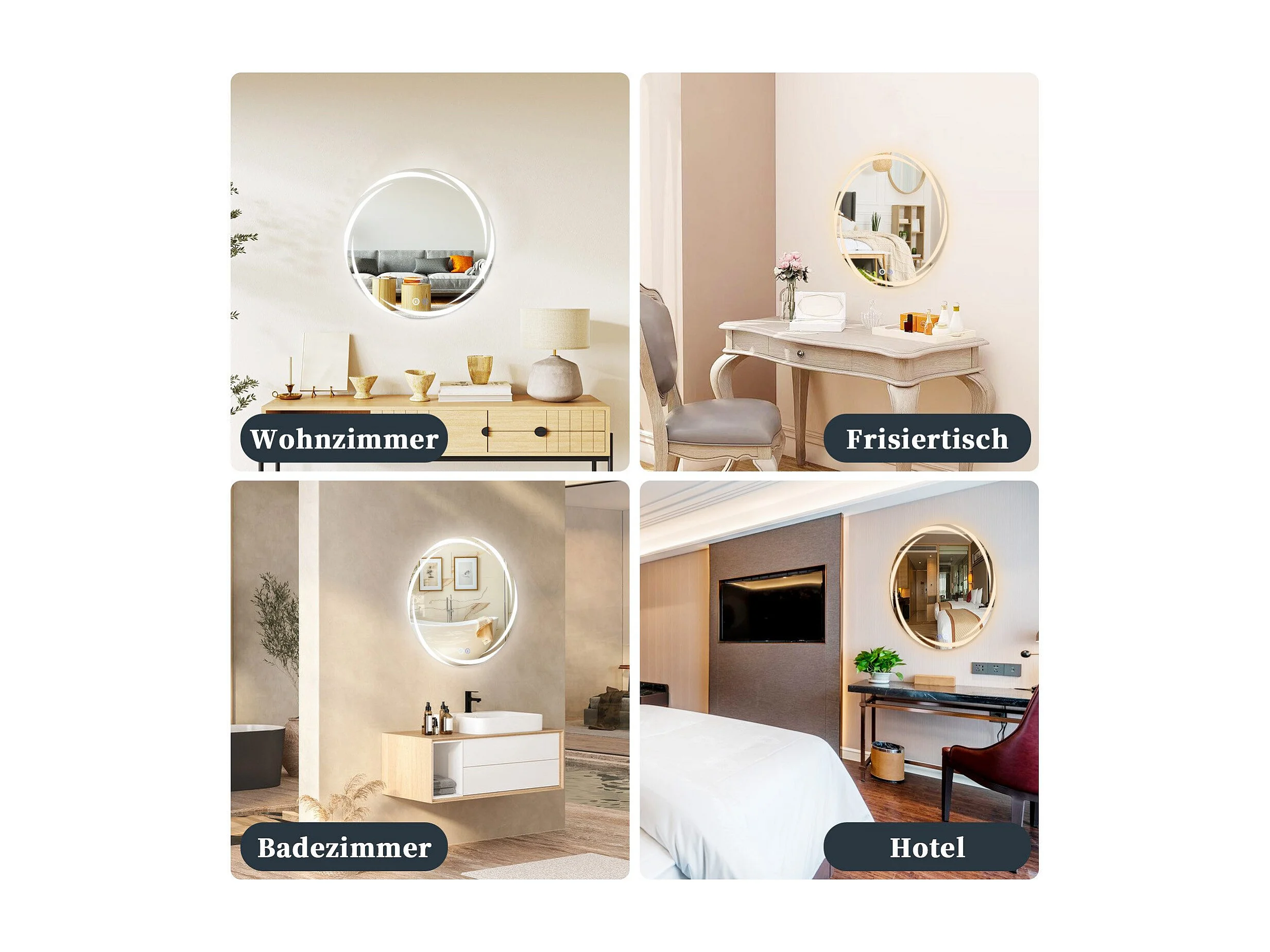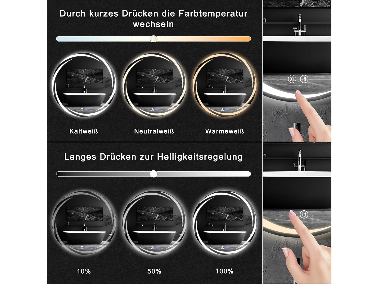 Miroir de salle de bain NETTLIFE avec éclairage, miroir de salle de bain rond à LED, miroir de salle de bain rond IP44 de 70 cm avec fonction tactile