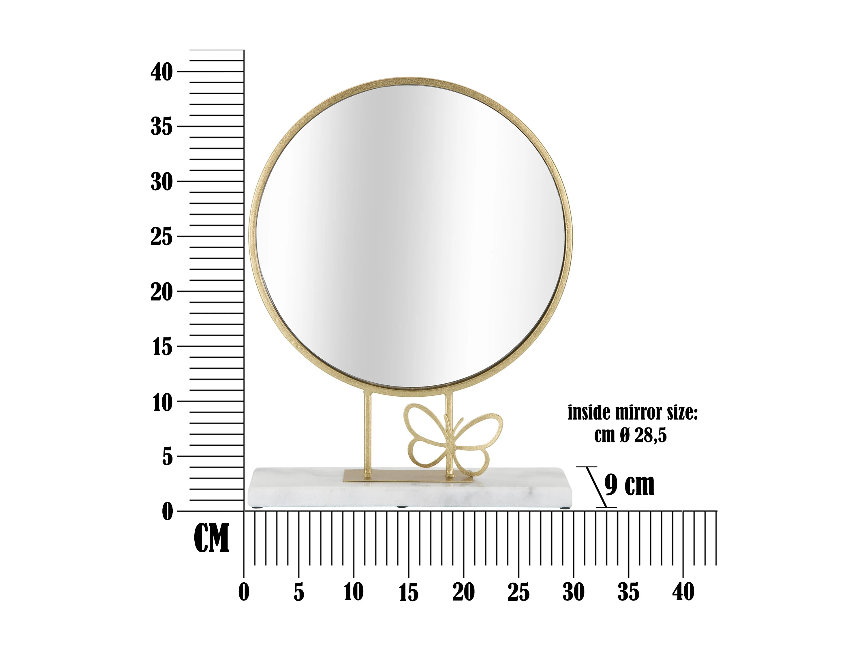 Miroir sur Pied en Marbre "Butterfly" 39cm Or