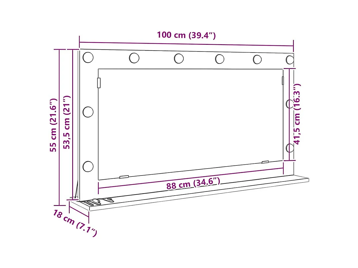 Miroir de vanité avec miroir Chêne noir 100 x 55 x 18 cm