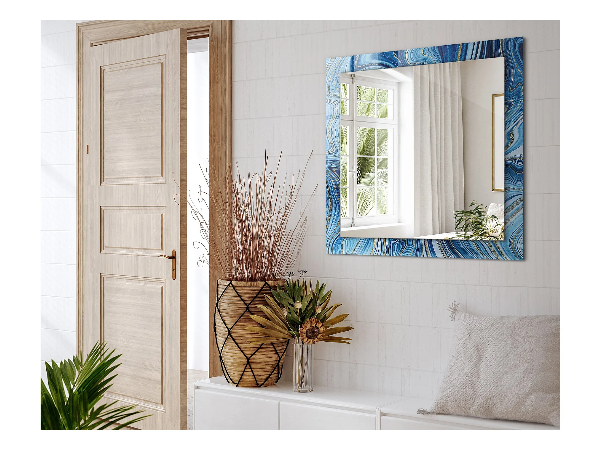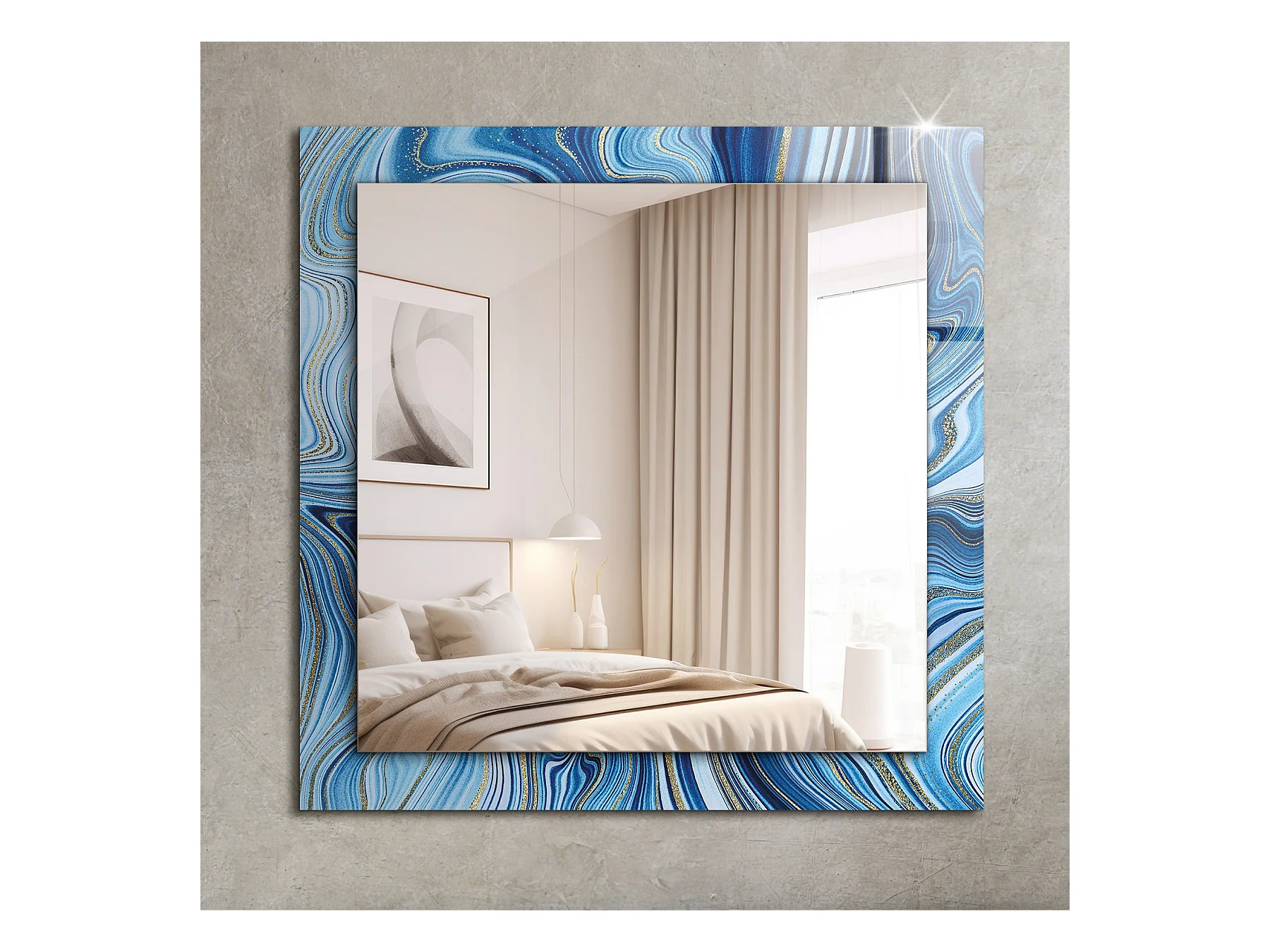 Miroir décoratif avec cadre motif bleu 60 x 60 cm