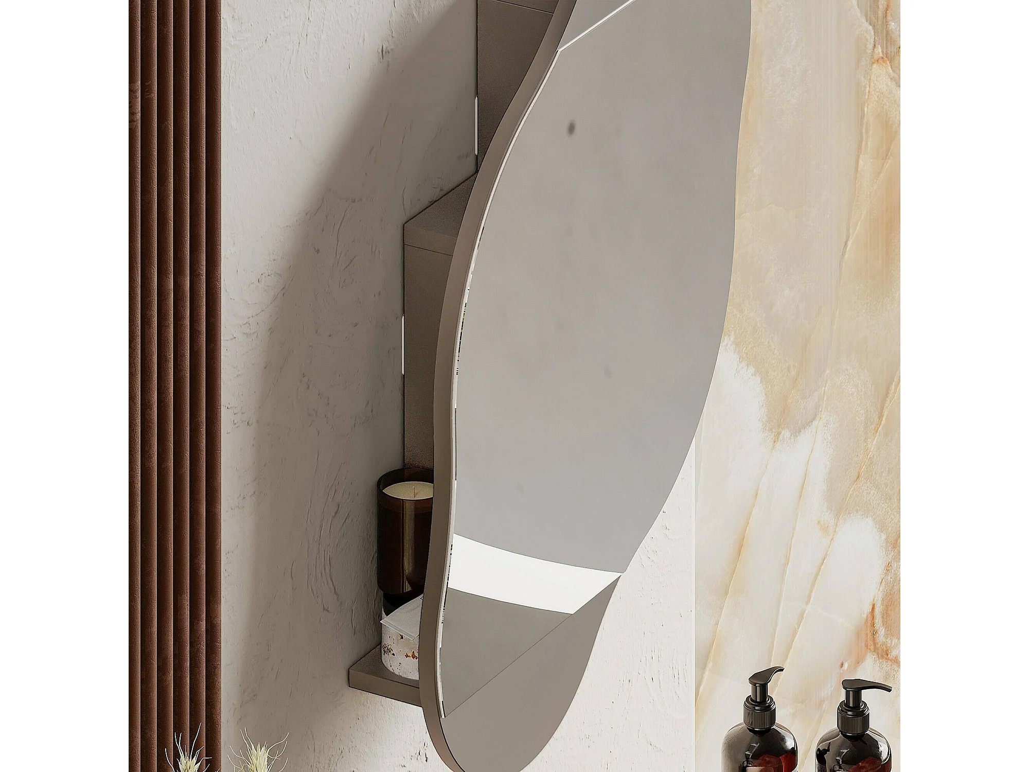 Miroir Dmontevag, Verre miroité, Objet d'ameublement mural, Décoration avec miroir, 60x13 h75 cm, Beige