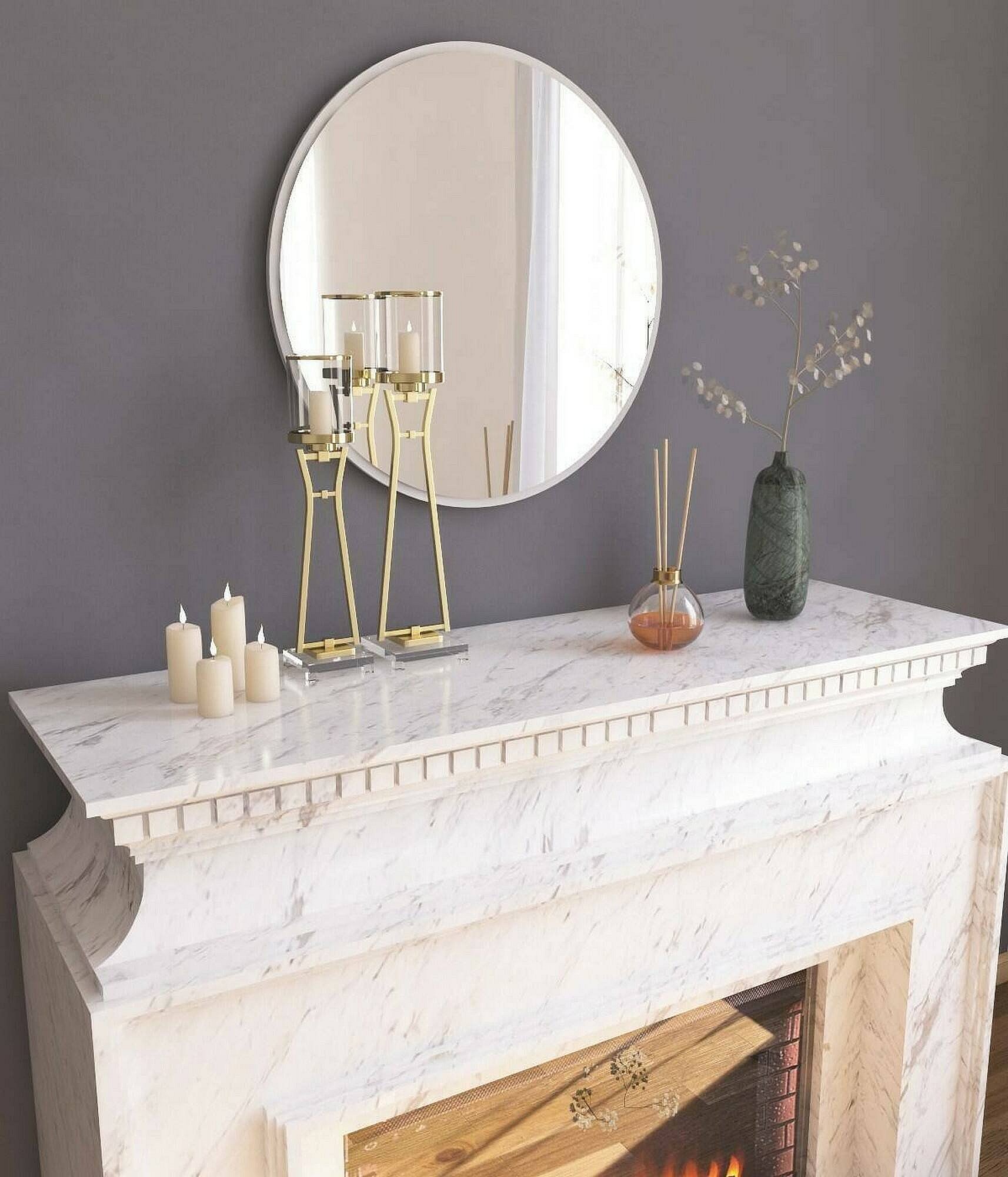Miroir Euterpe, Verre miroité, Objet d'ameublement mural, Décoration avec miroir, 60x2h60 cm, Blanc