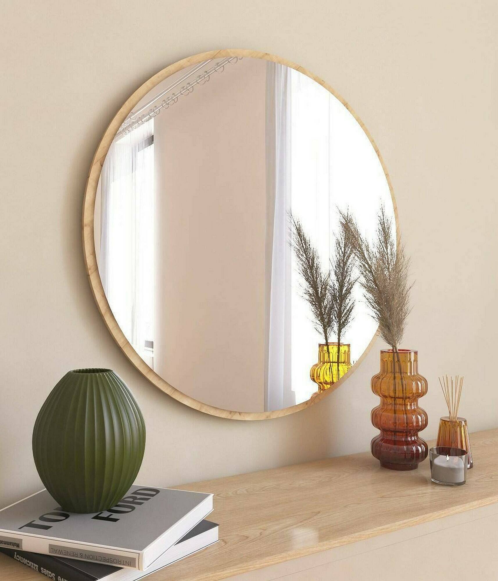 Miroir Euterpe, Verre miroité, Objet d'ameublement mural, Décoration avec miroir, 60x2h60 cm, Chêne