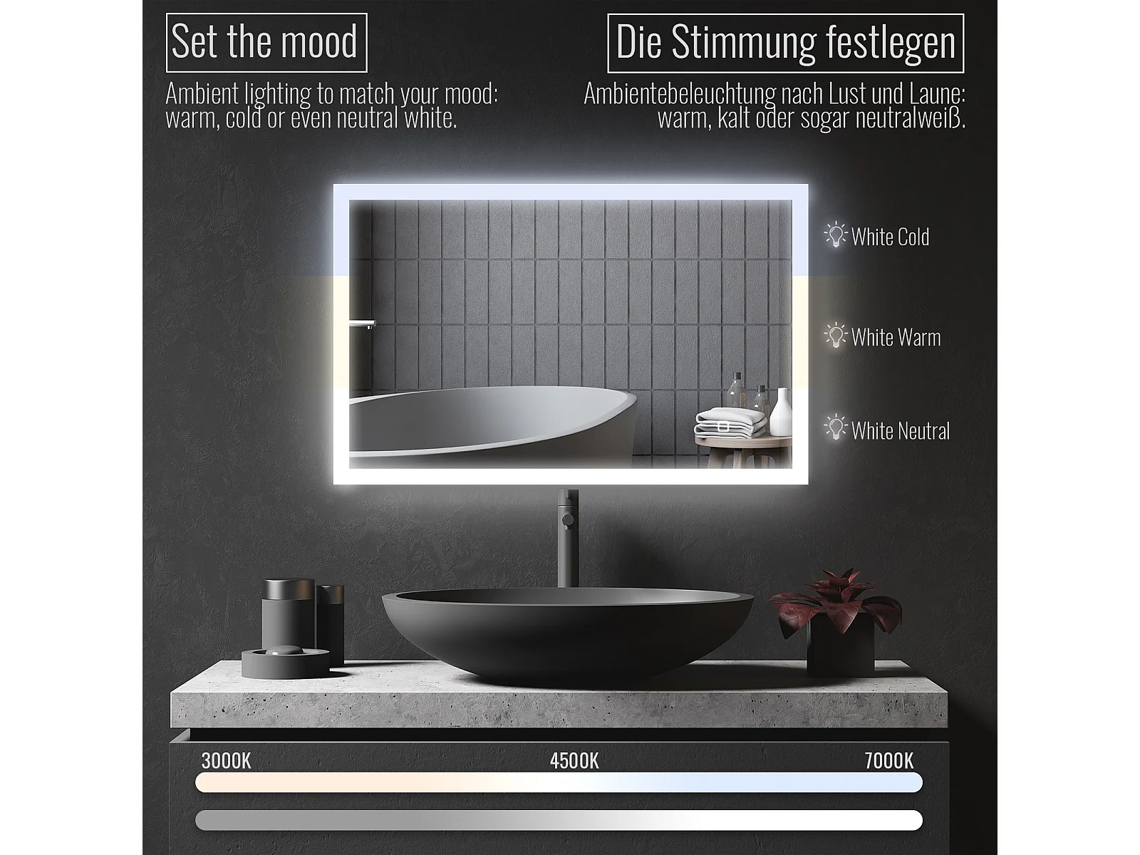 Miroir LED - 100x60 cm - avec fonction anti-condensation - dimmable
