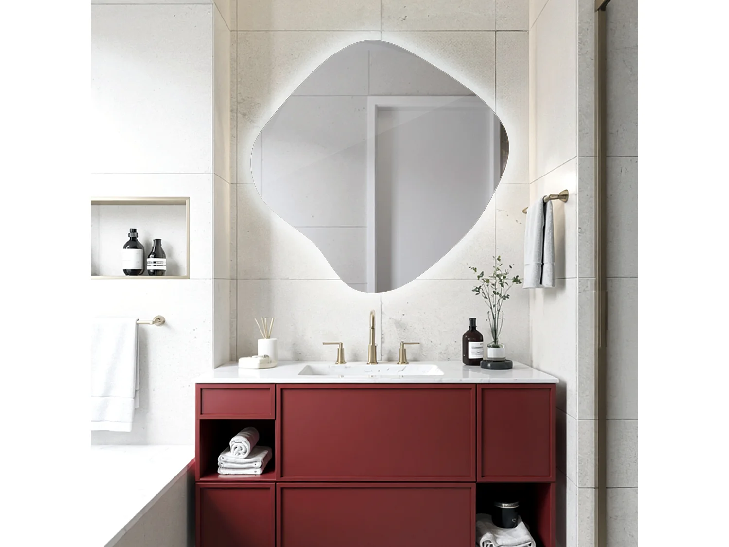 Miroir asymétrique LED forme originale, Éclairage neutre pour salle de bain ou entrée, 55x38 cm, Tulup