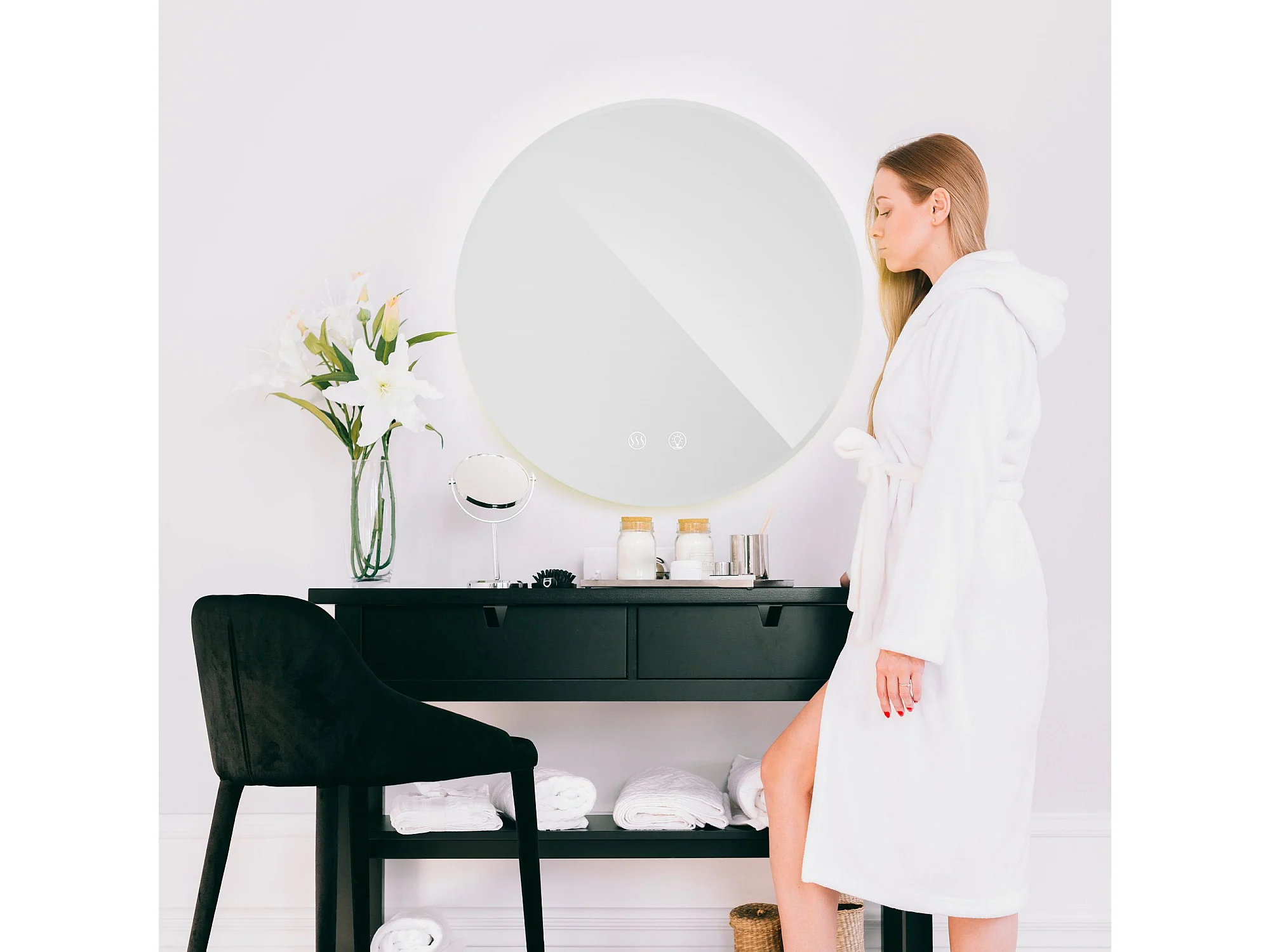 Miroir LED rond REA 50cm avec éclairage et fonction chauffage
