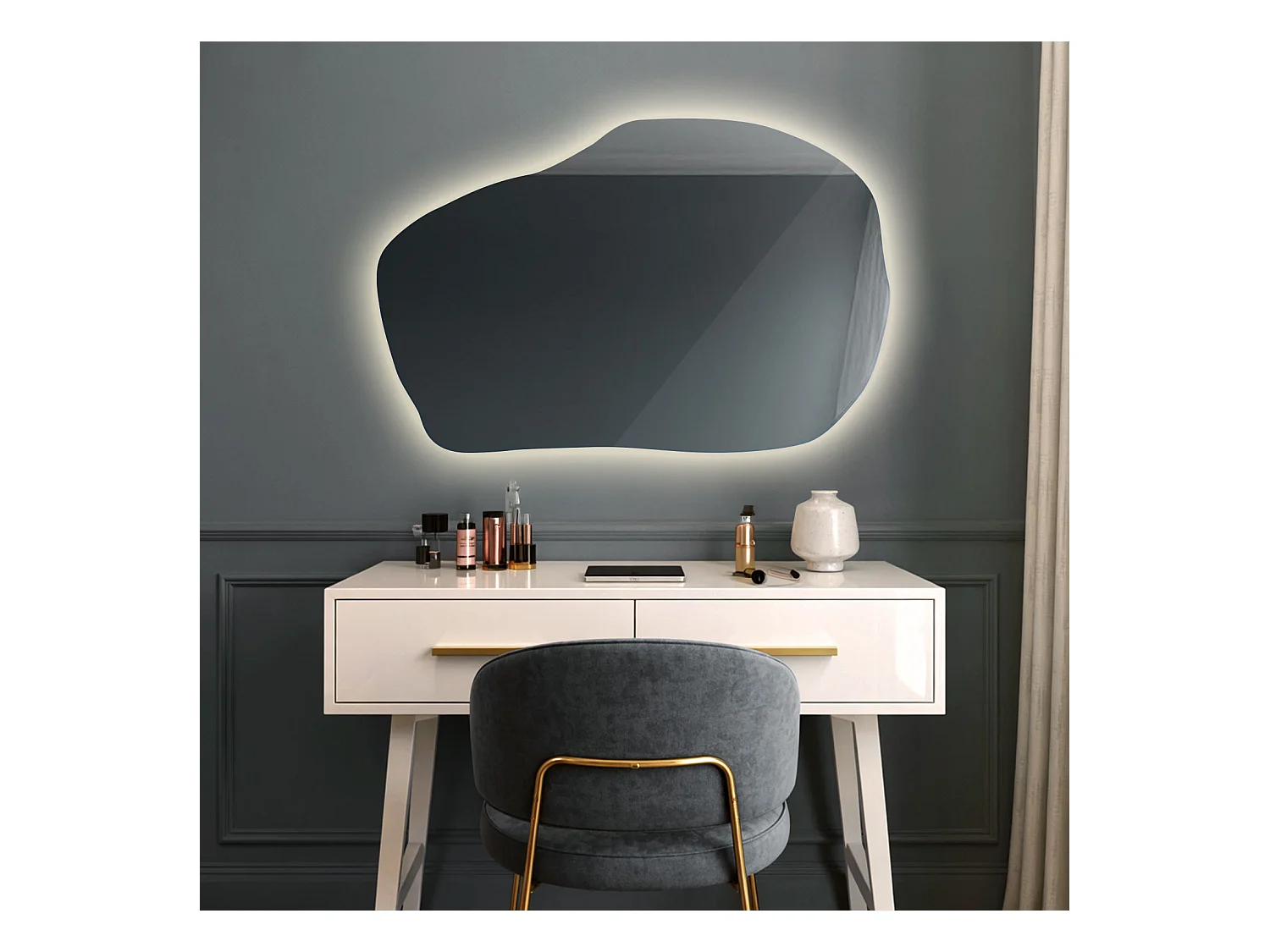 Miroir décoratif organique LED de Tulup, Lumière froide, 80 cm x 52 cm, pour Salle de Bains Salon Chambre