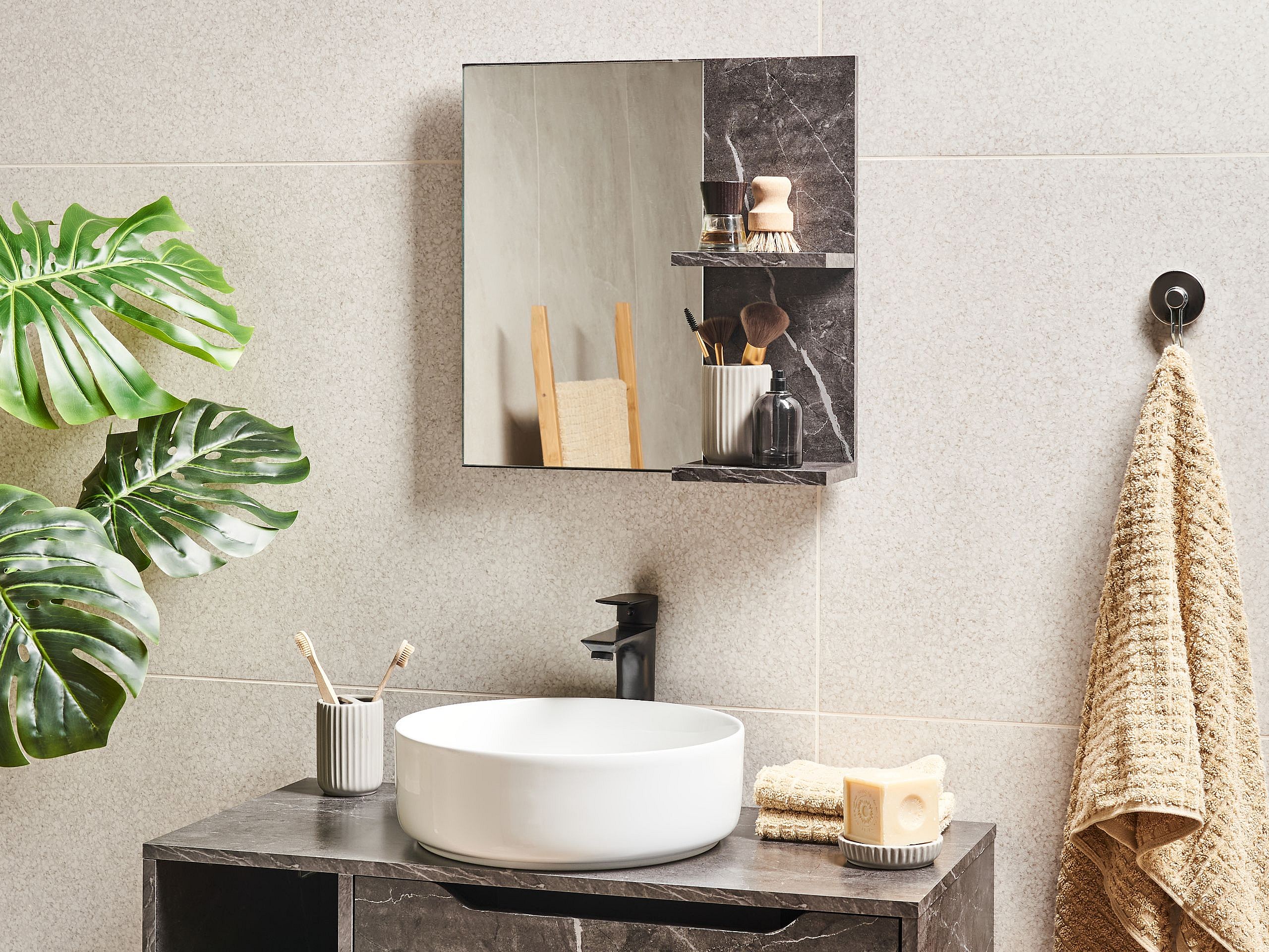 Miroir mural avec étagère PELOTAS 45 cm 45 cm Marbre/noir