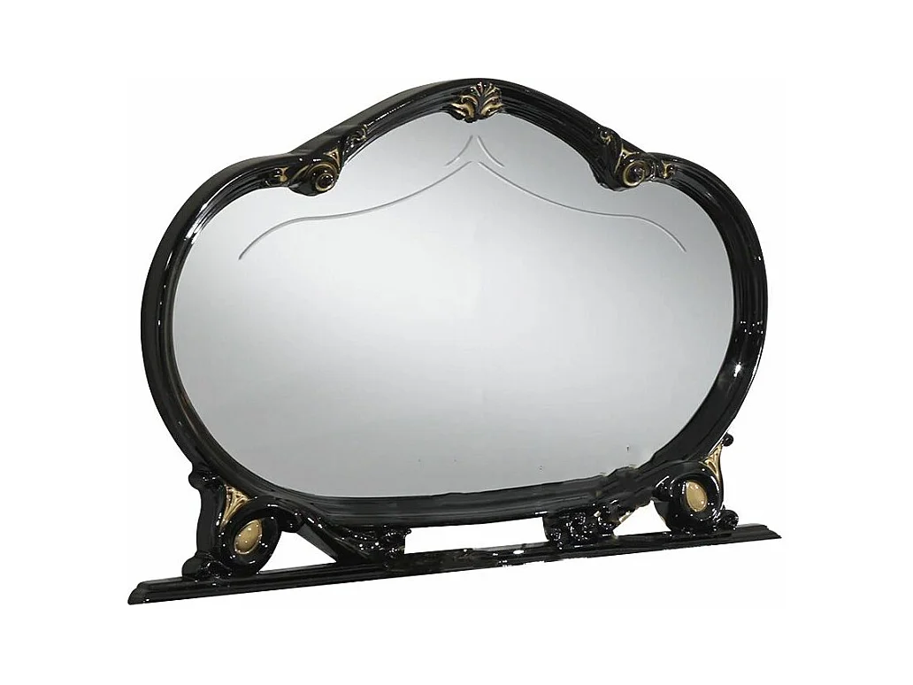 Miroir mural bois vernis laqué brillant noir et doré Lesly 130cm