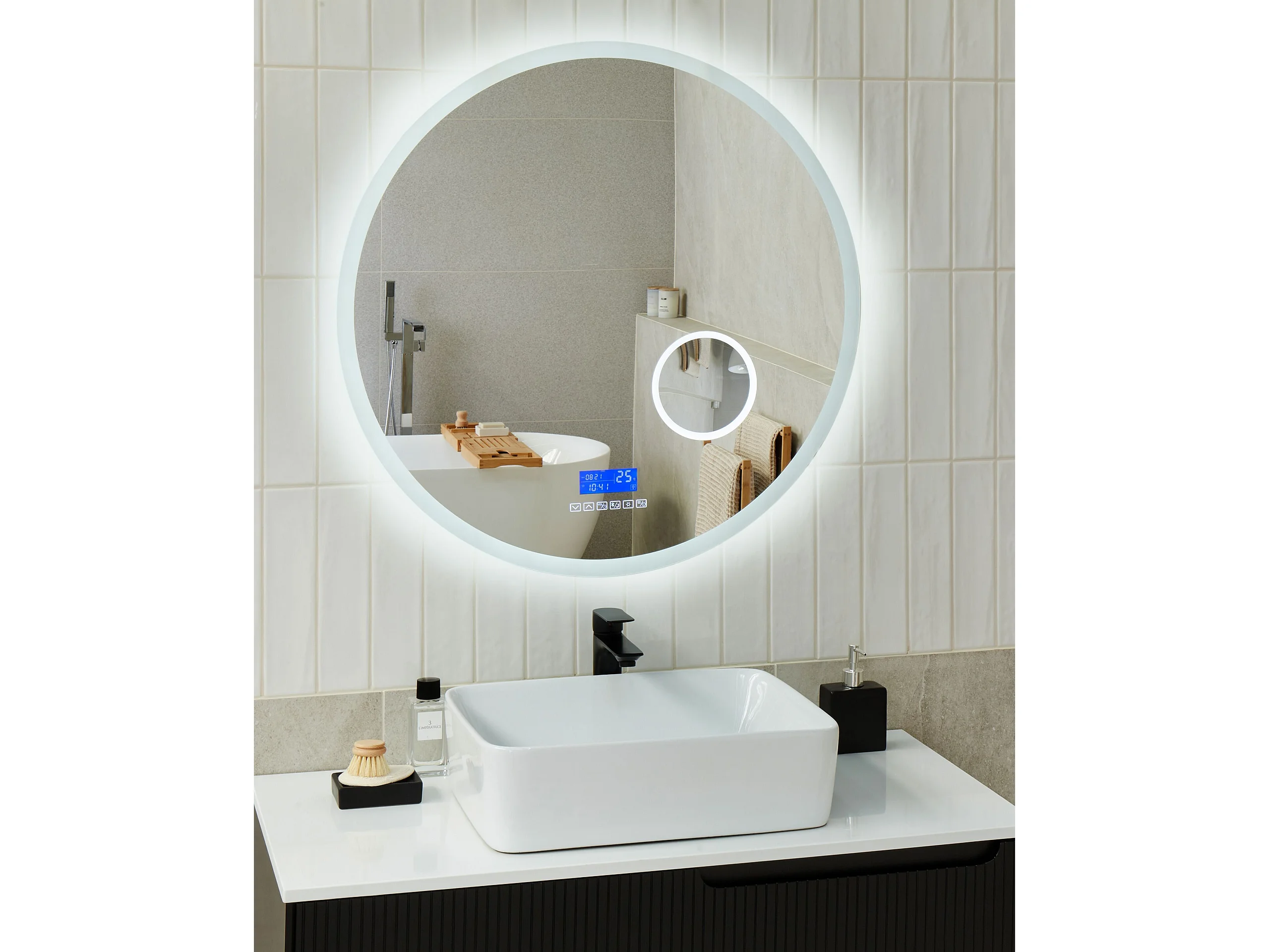Miroir de salle de bain LED FIXIN 80 cm 80 cm Avec haut-parleur Bluetooth intégré Argenté