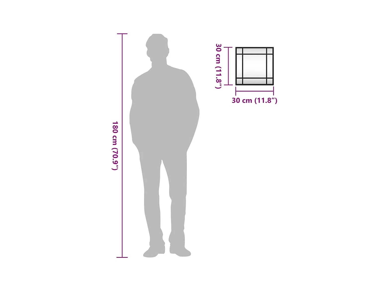 Miroir mural noir 30x30 cm carré fer
