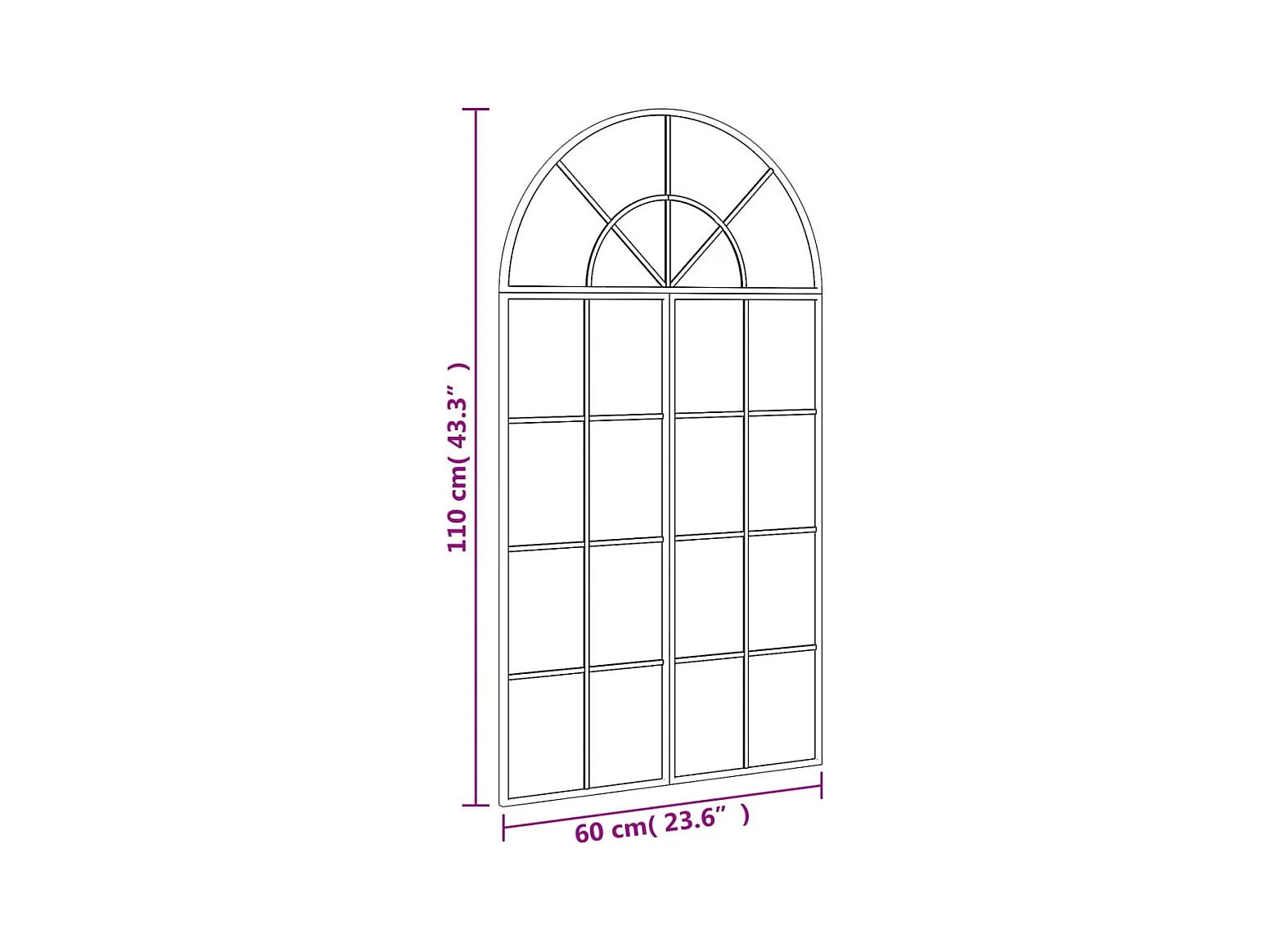 Miroir mural noir 60x110 cm arche fer