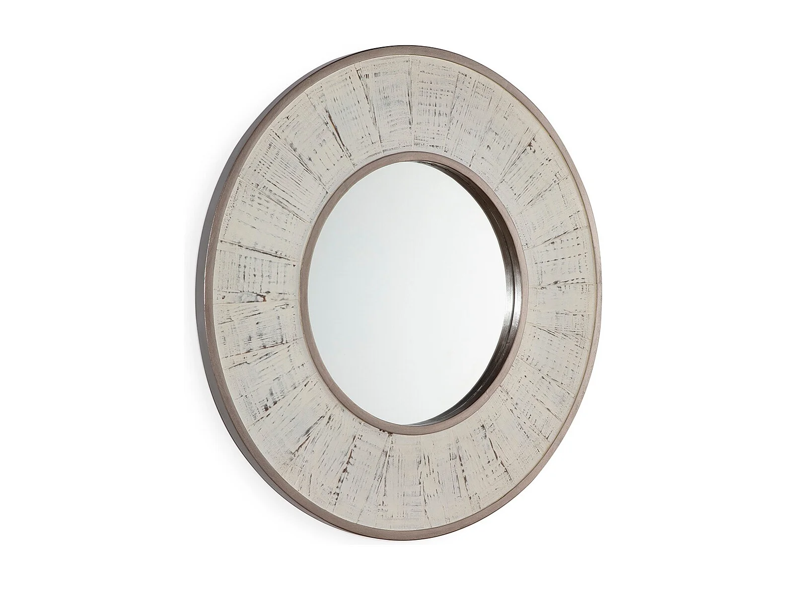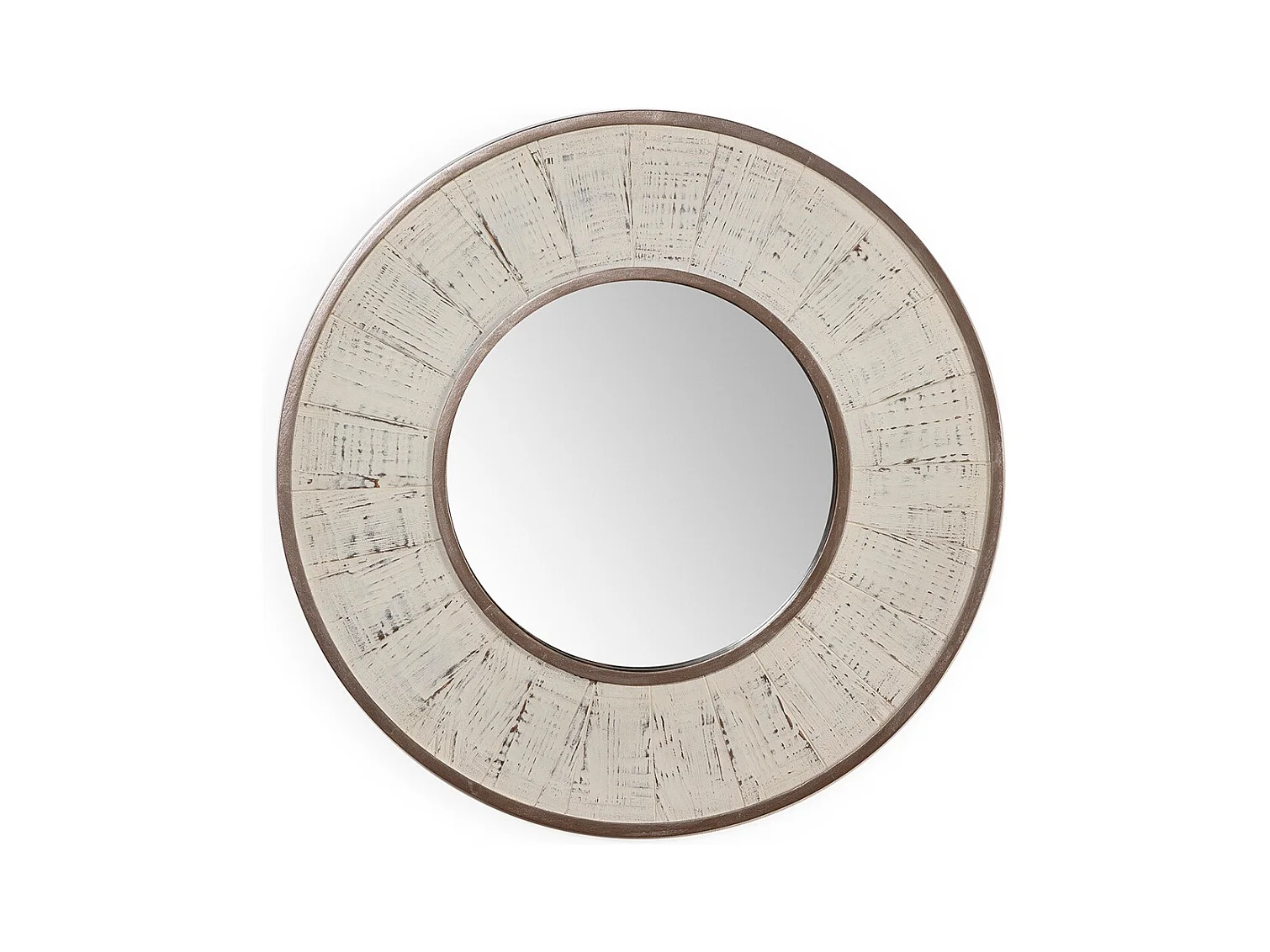Miroir mural rond en bois blanc antique TANUZ – Ø 80cm