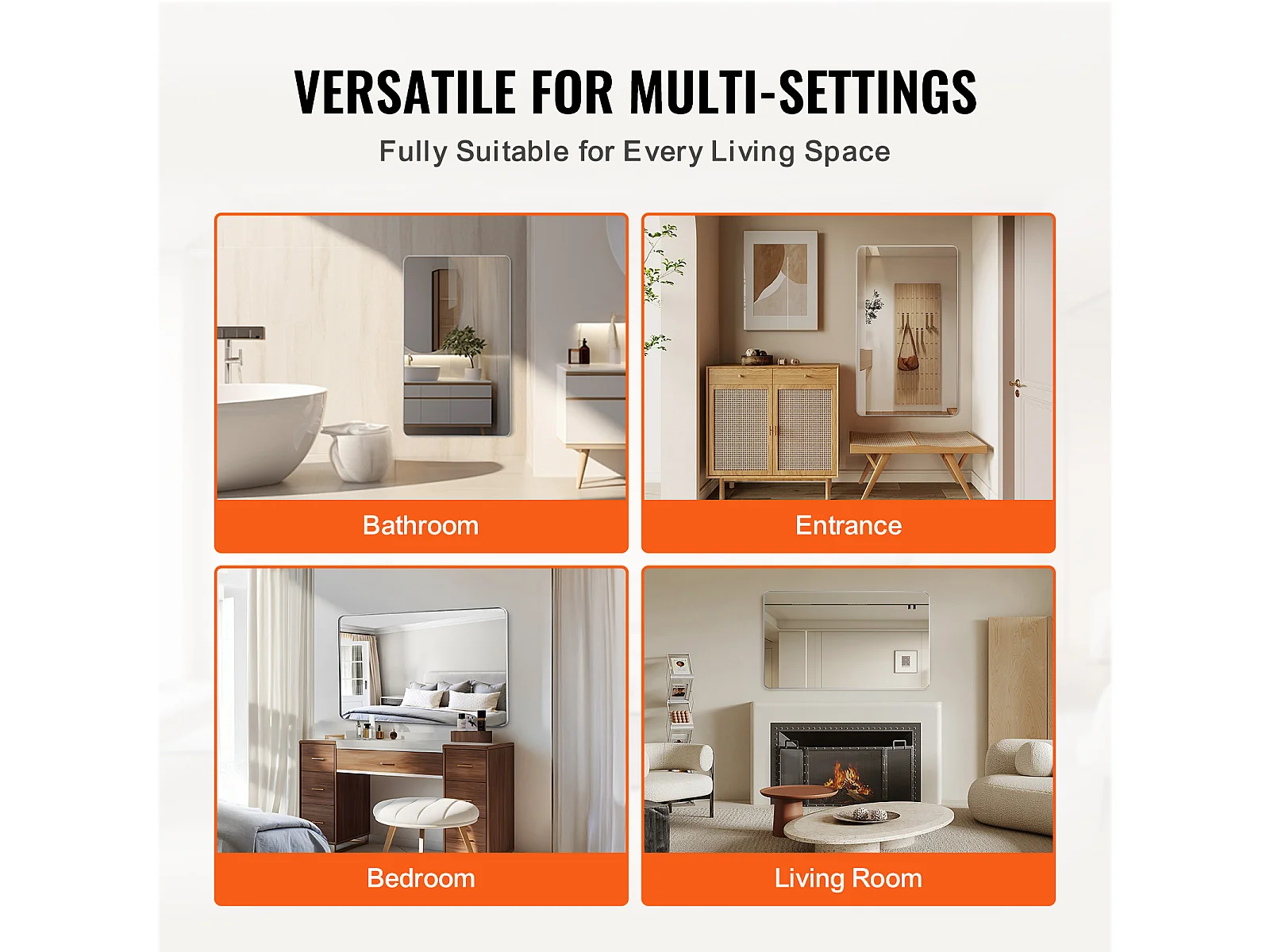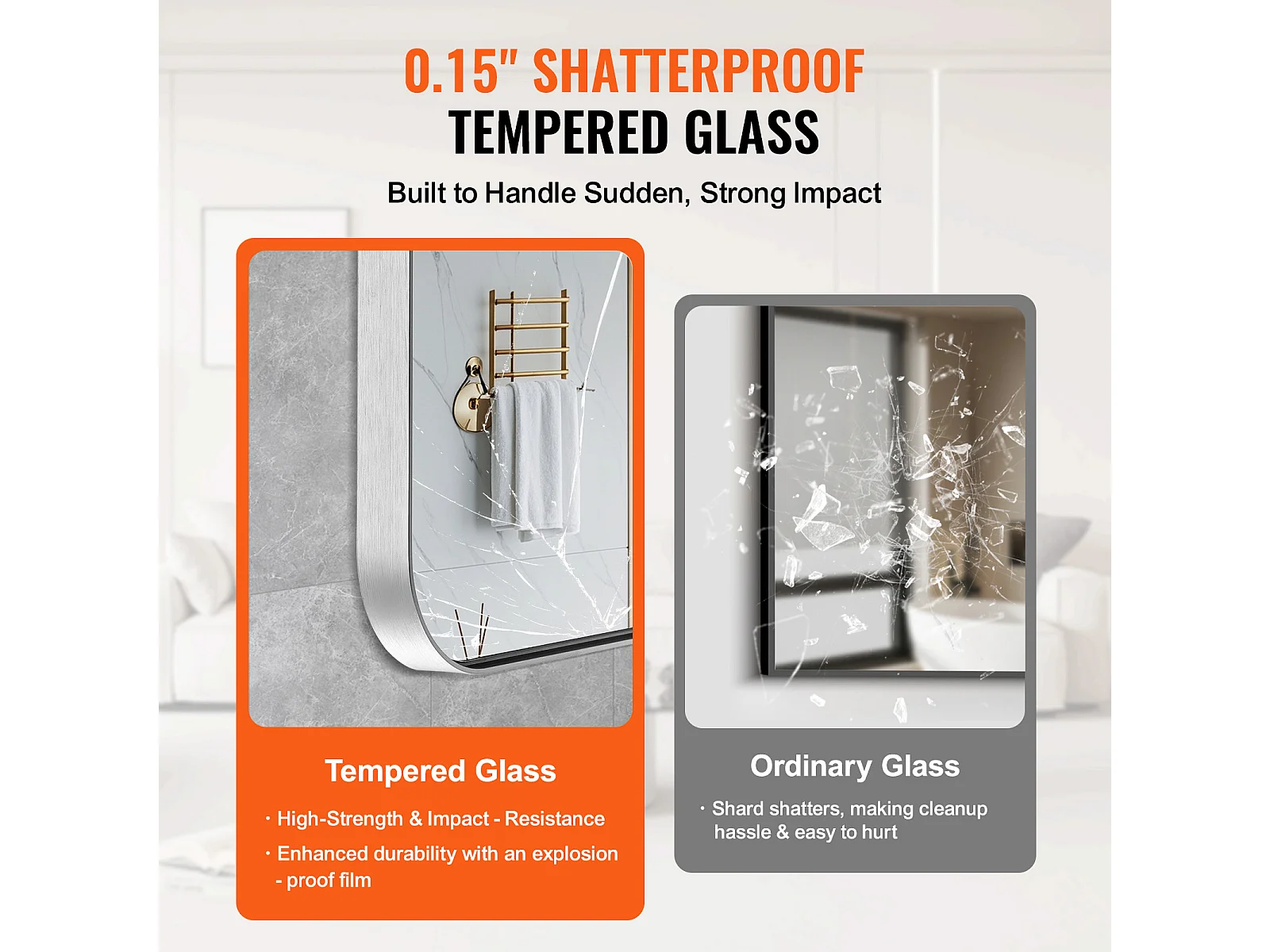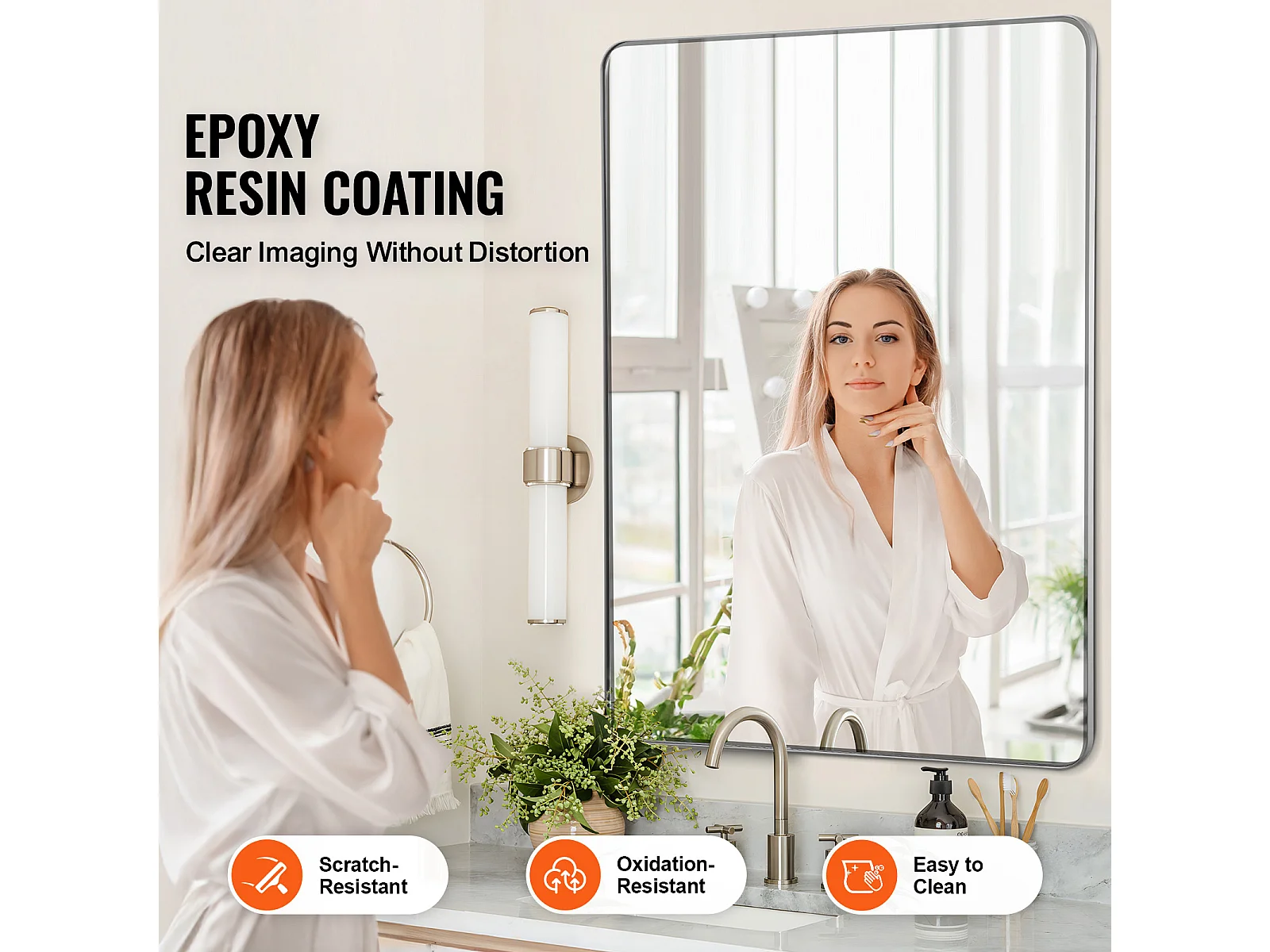 Miroir Mural SucceBuy 91,6 x 121,9 cm, Argent, Miroir Mural Carré en Alliage d'Aluminium