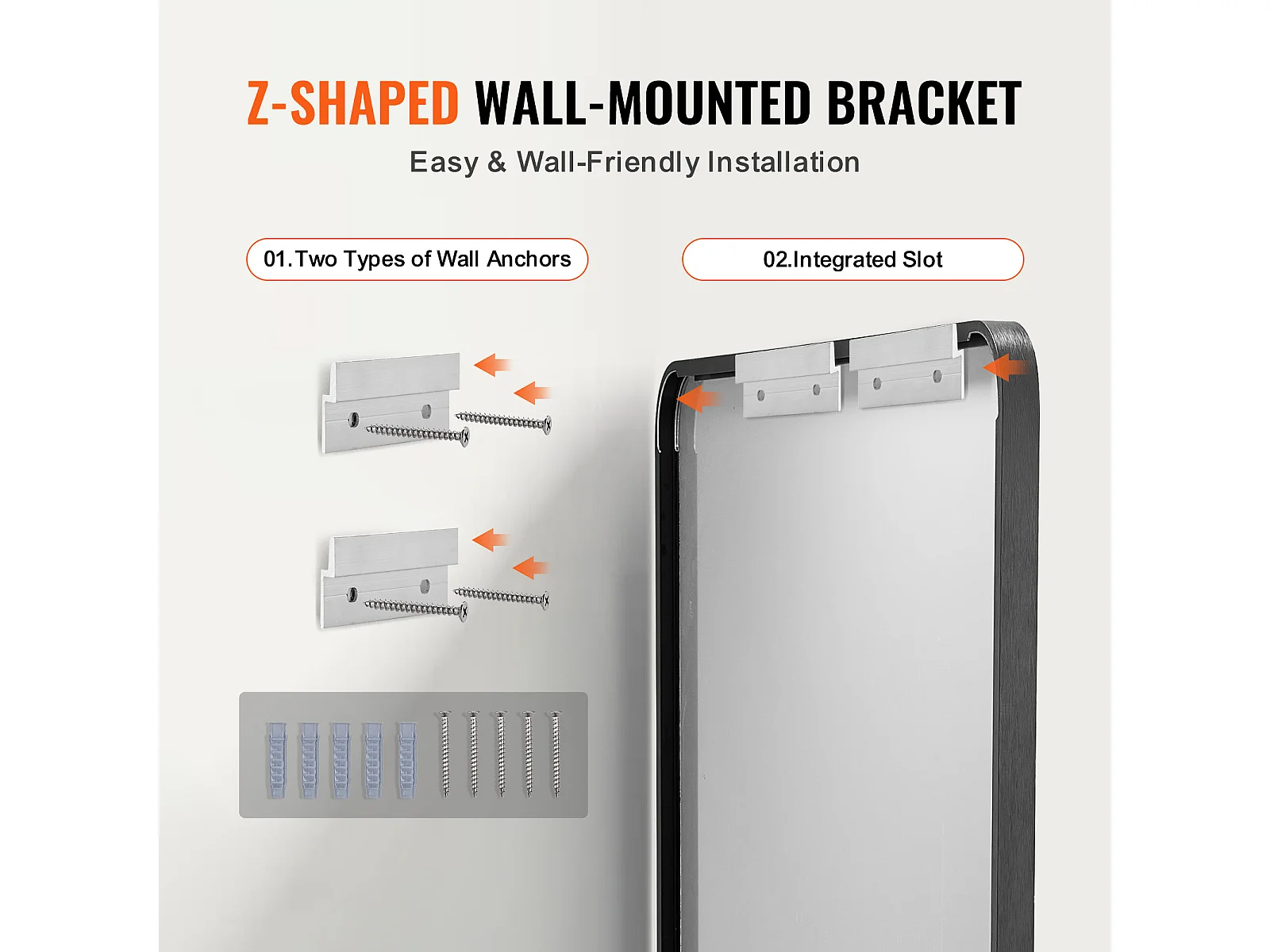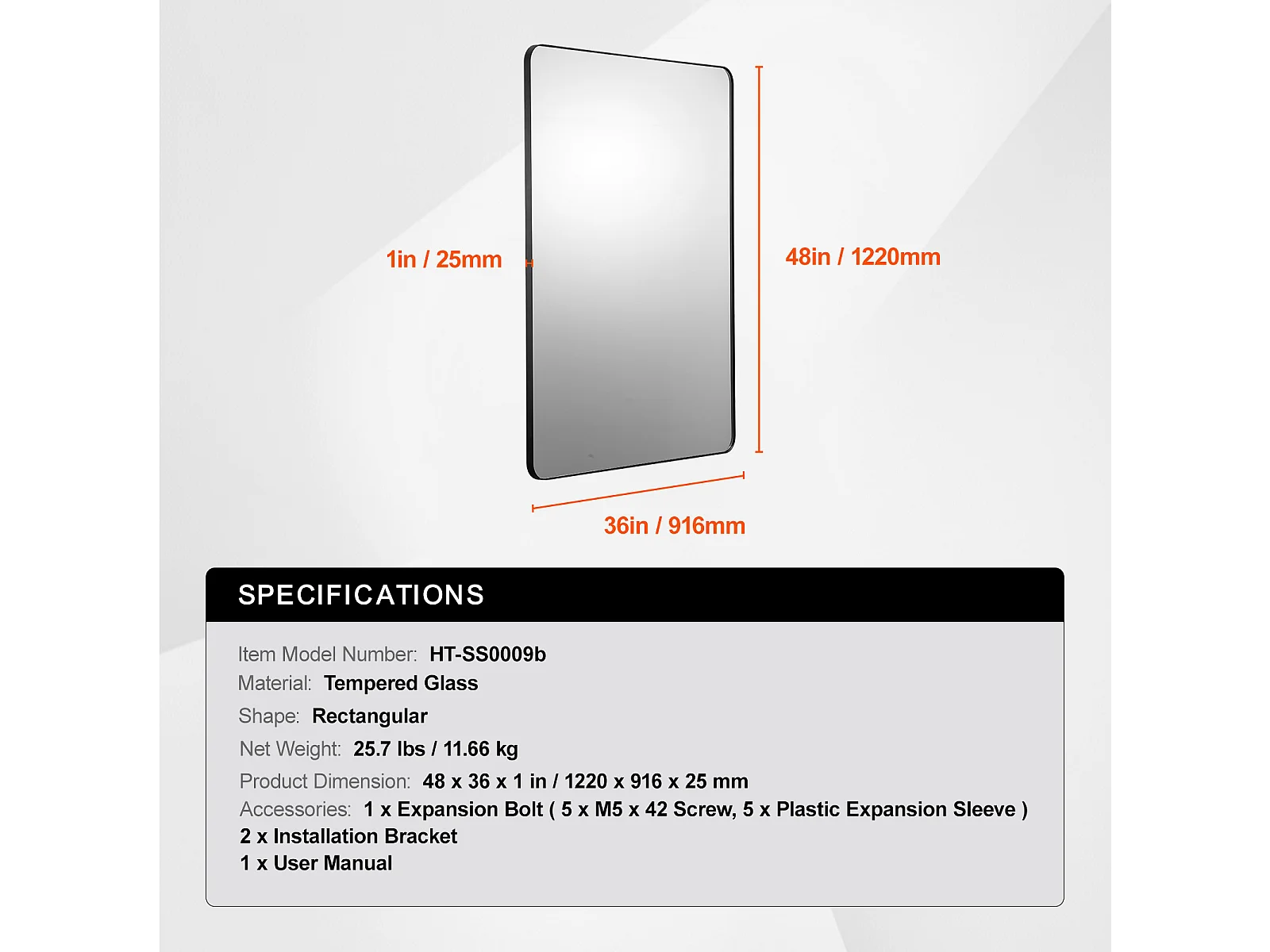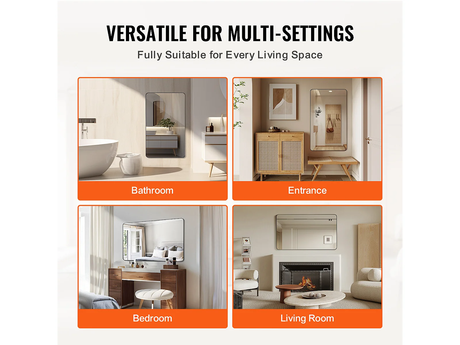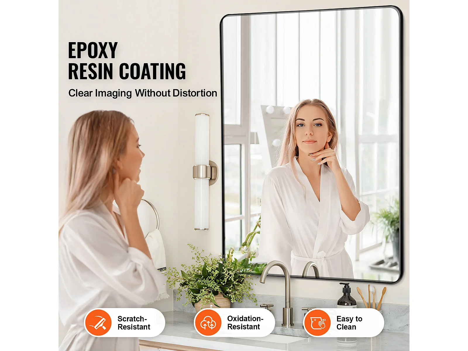 Miroir Mural SucceBuy 91,6 x 121,9 cm, Noir, Miroir avec Cadre en Alliage d'Aluminium