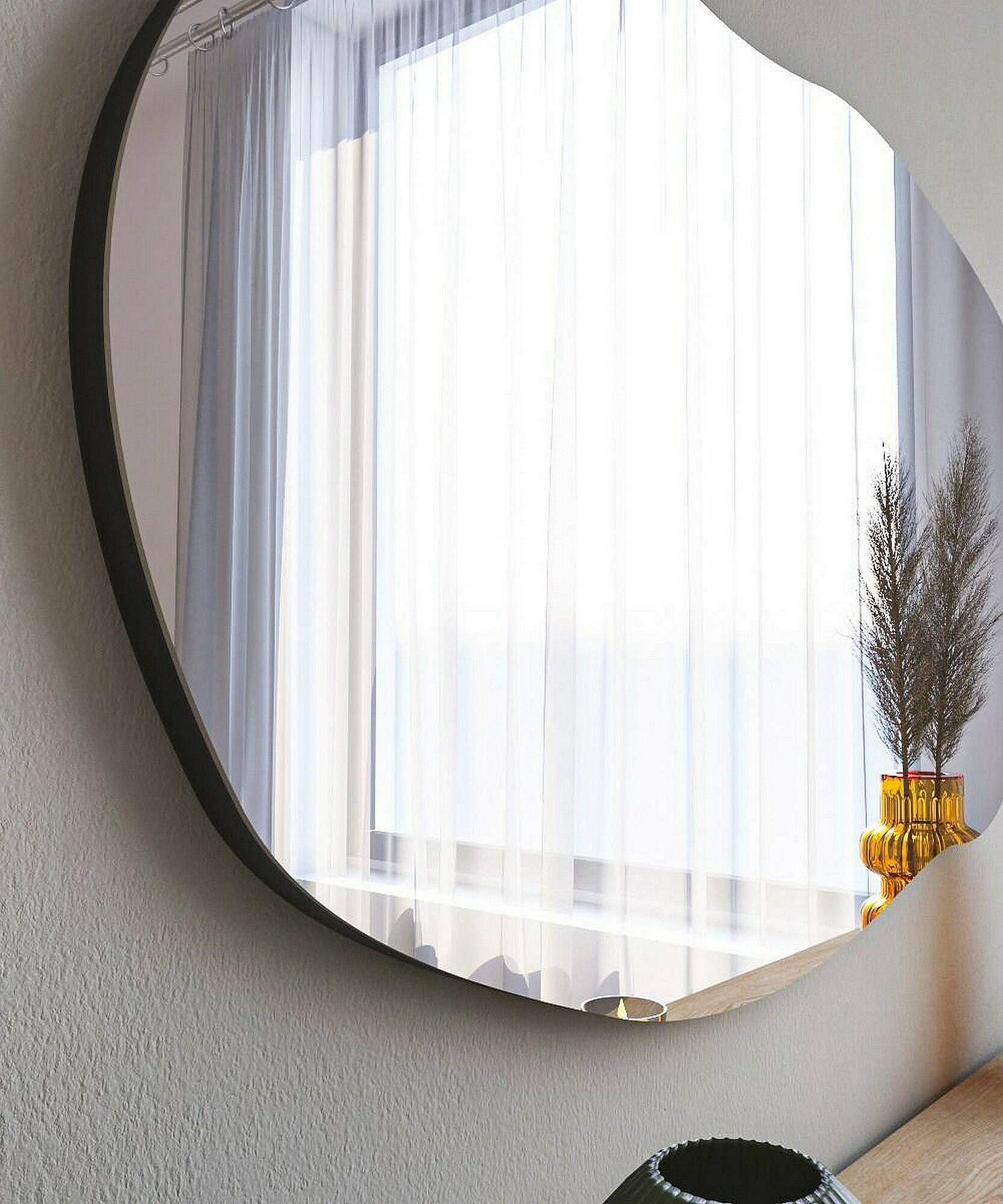 Miroir Ophelia, Verre miroité, Objet d'ameublement mural, Décoration avec miroir, 52x2h89 cm, Noir