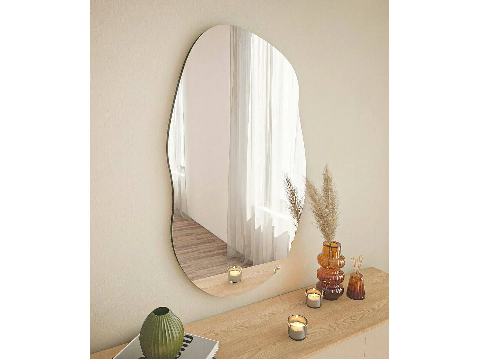 Miroir Ophelia, Verre miroité, Objet d'ameublement mural, Décoration avec miroir, 52x2h89 cm, Noir