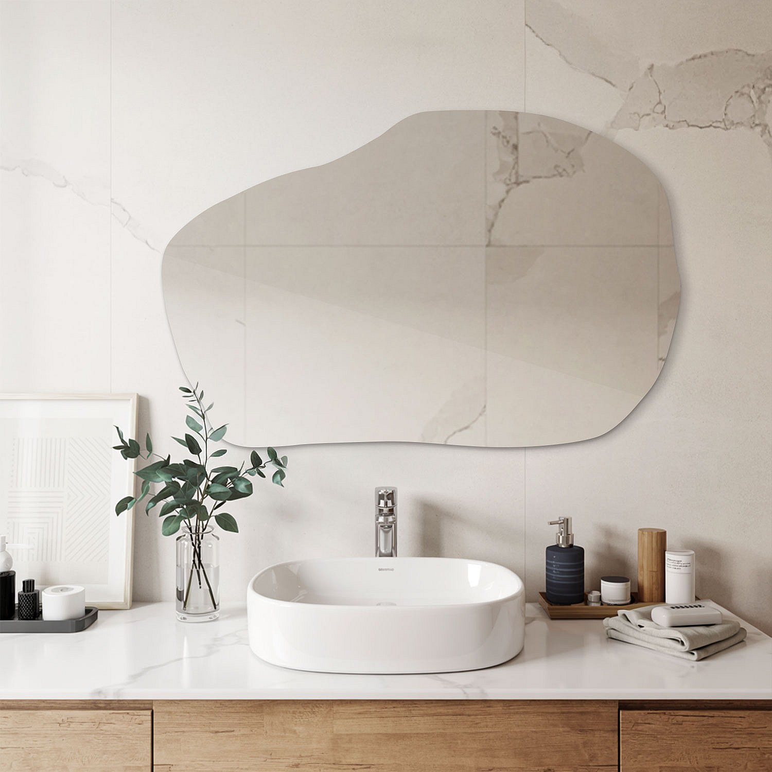 Miroir organique Tulup, Dimension 80 cm x 52 cm, Forme unique, ajoute du caractère à votre salon ou dressing.