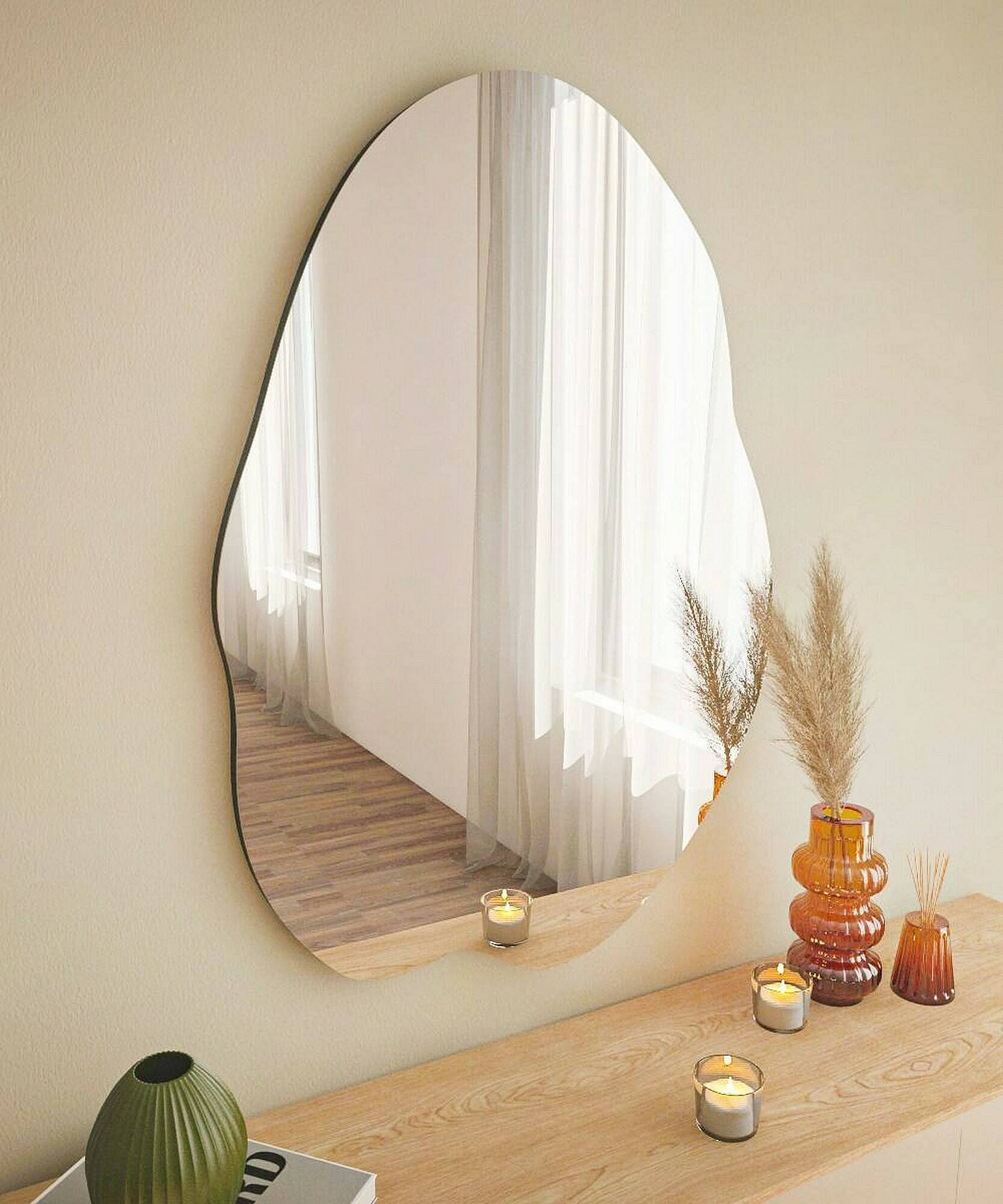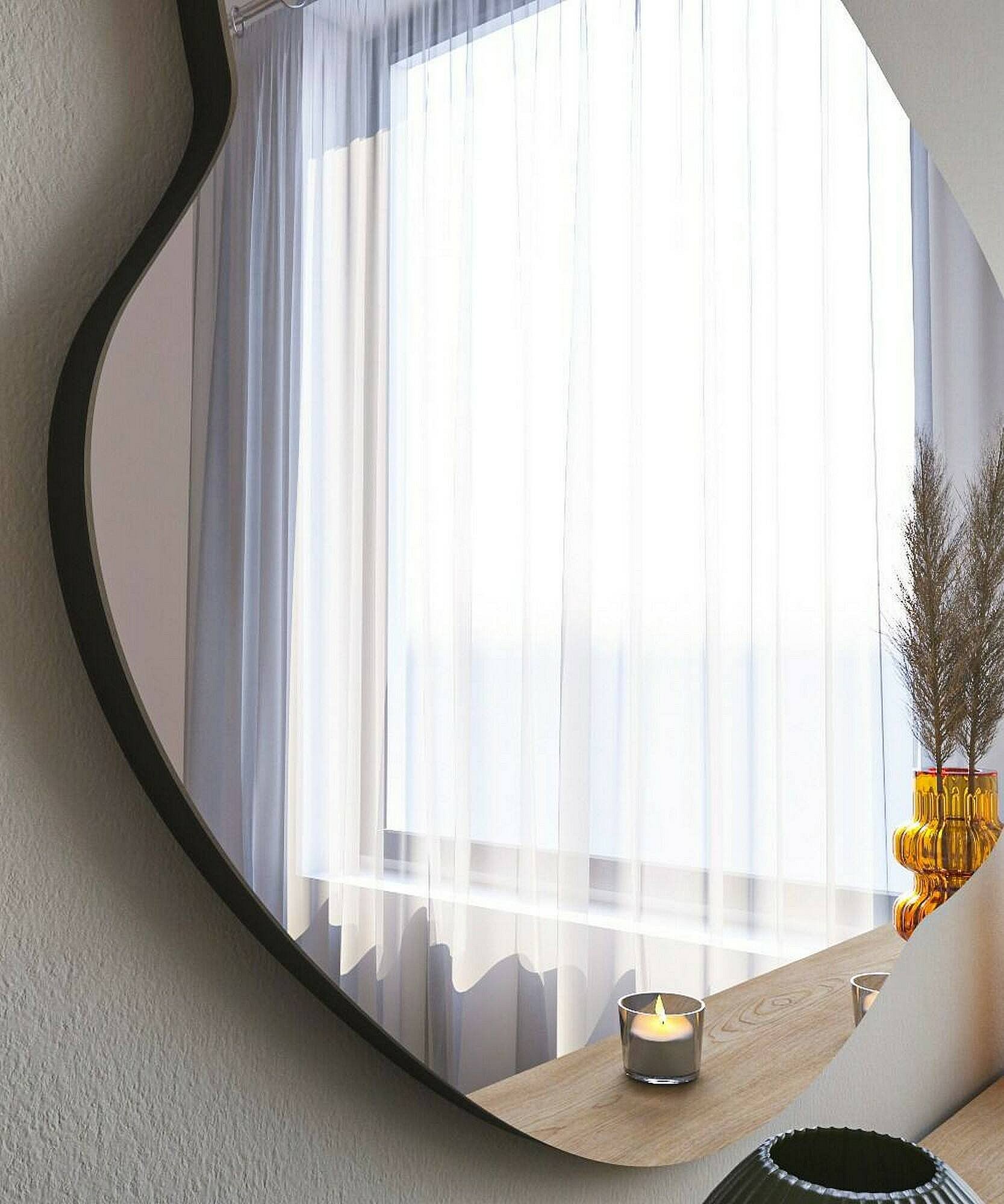 Miroir Phact, Verre miroité, Objet d'ameublement mural, Décoration avec miroir, 60x2h85 cm, Noir