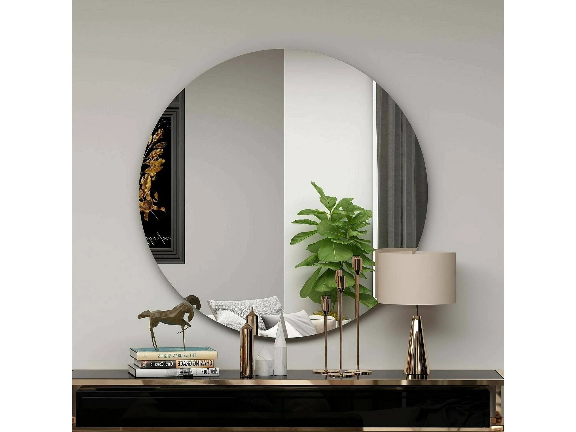 Miroir Phaeton, Verre miroité, Objet d'ameublement mural, Décoration avec miroir, 70x2h70 cm, Noir