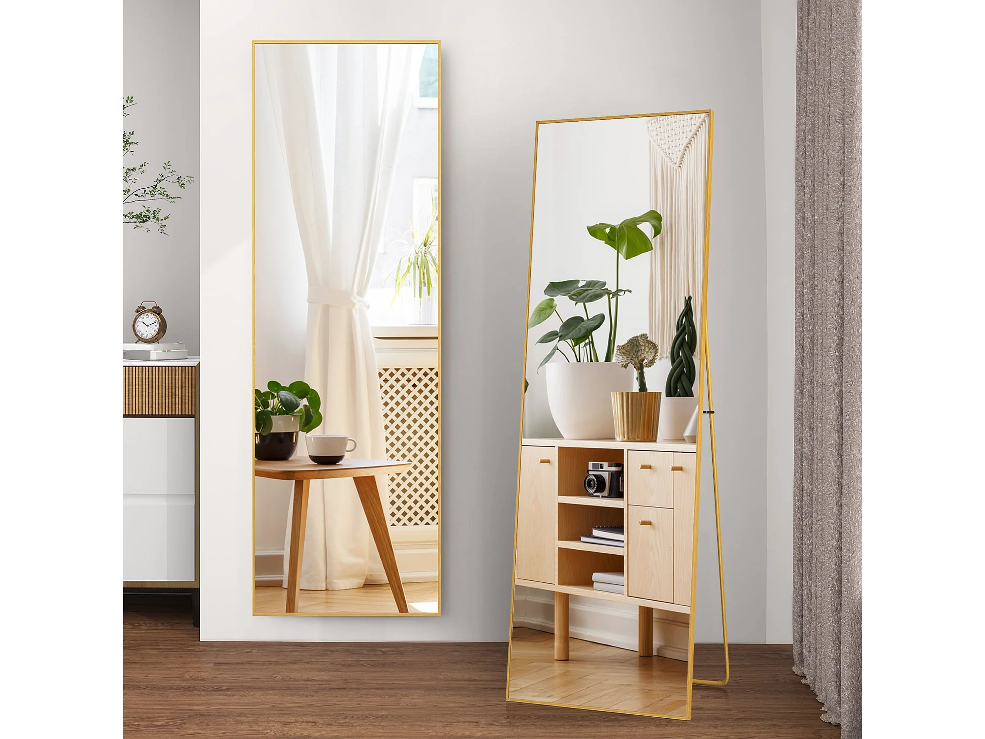 Miroir pleine longueur incassable 77 x 177 cm, sur pied ou mural, grand miroir de sol Doré