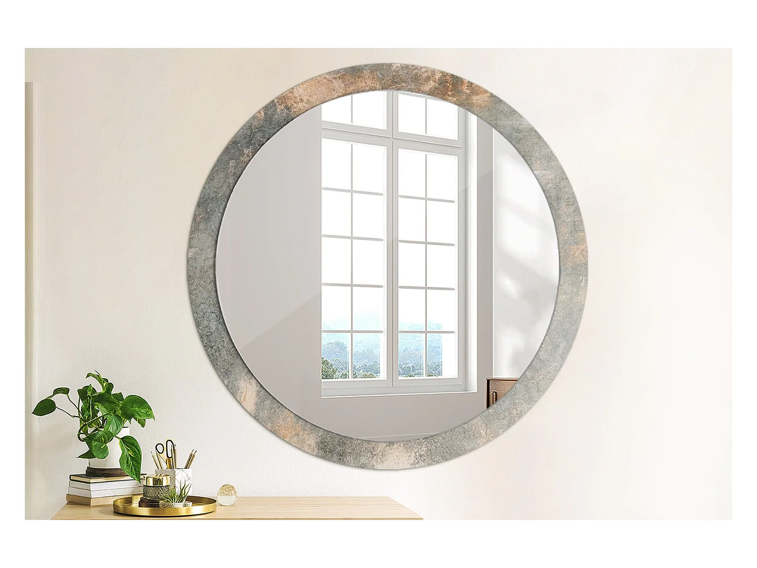 Miroir rond décoratif - Béton vintage - 100 cm