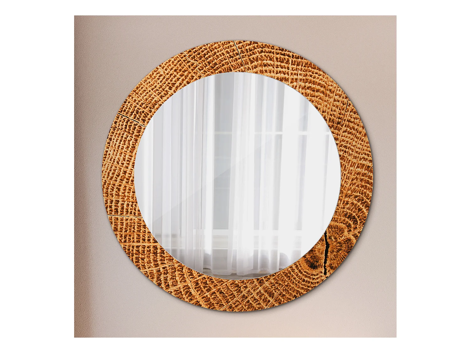 Miroir rond décoratif - Bois de chêne - 70 cm