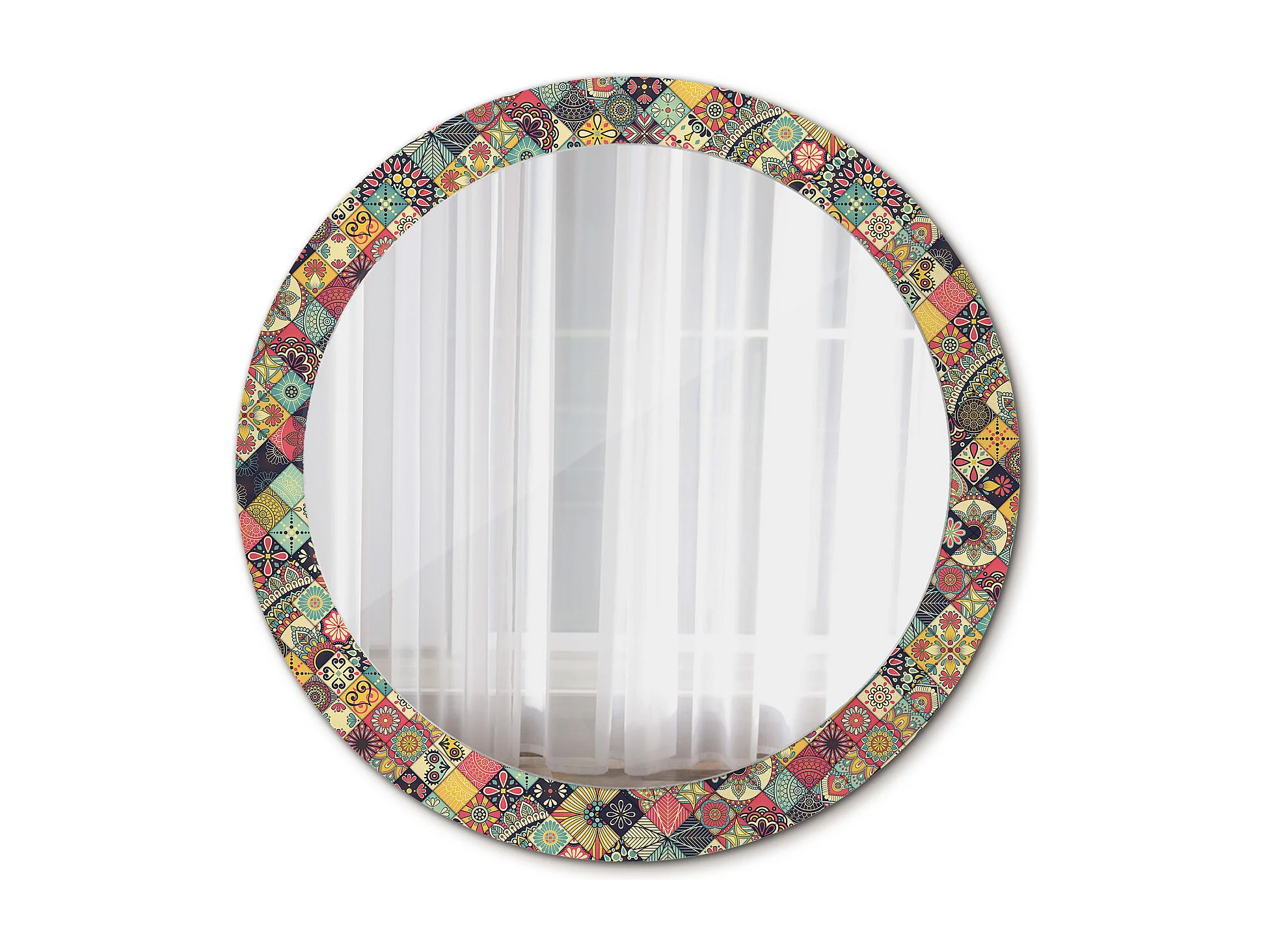 Miroir rond décoratif - Carreaux Patchwork - 80 cm