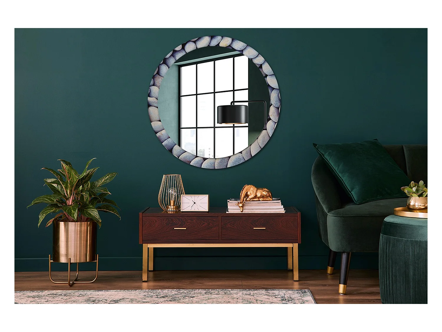 Miroir rond décoratif - Cercle de pierres de mer - 90 cm