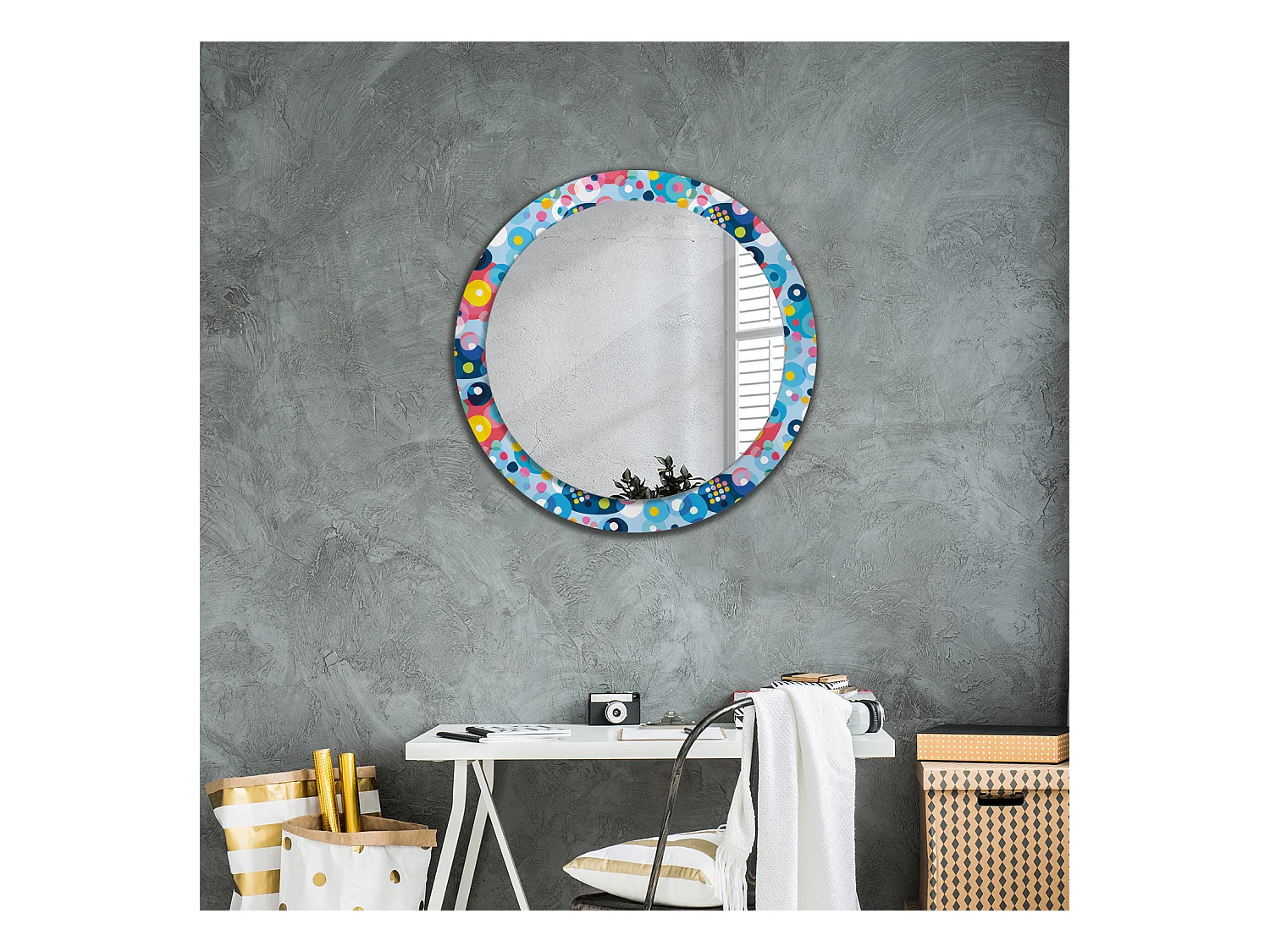Miroir rond décoratif - Cercles colorés - 80 cm