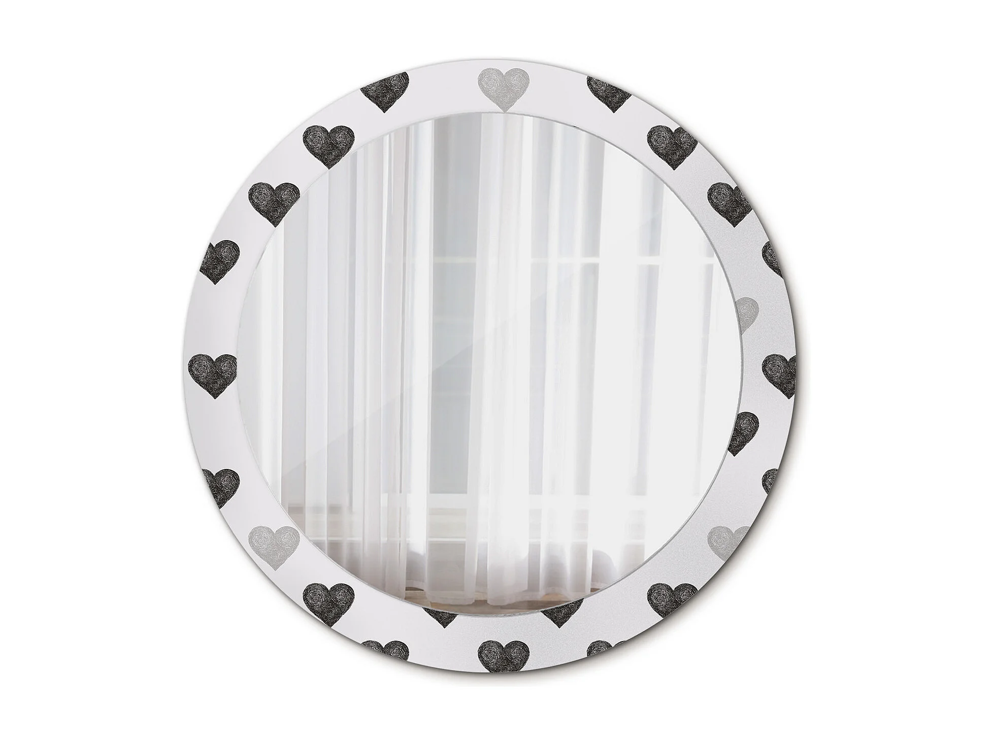 Miroir rond décoratif - Coeurs style Doodle - 80 cm