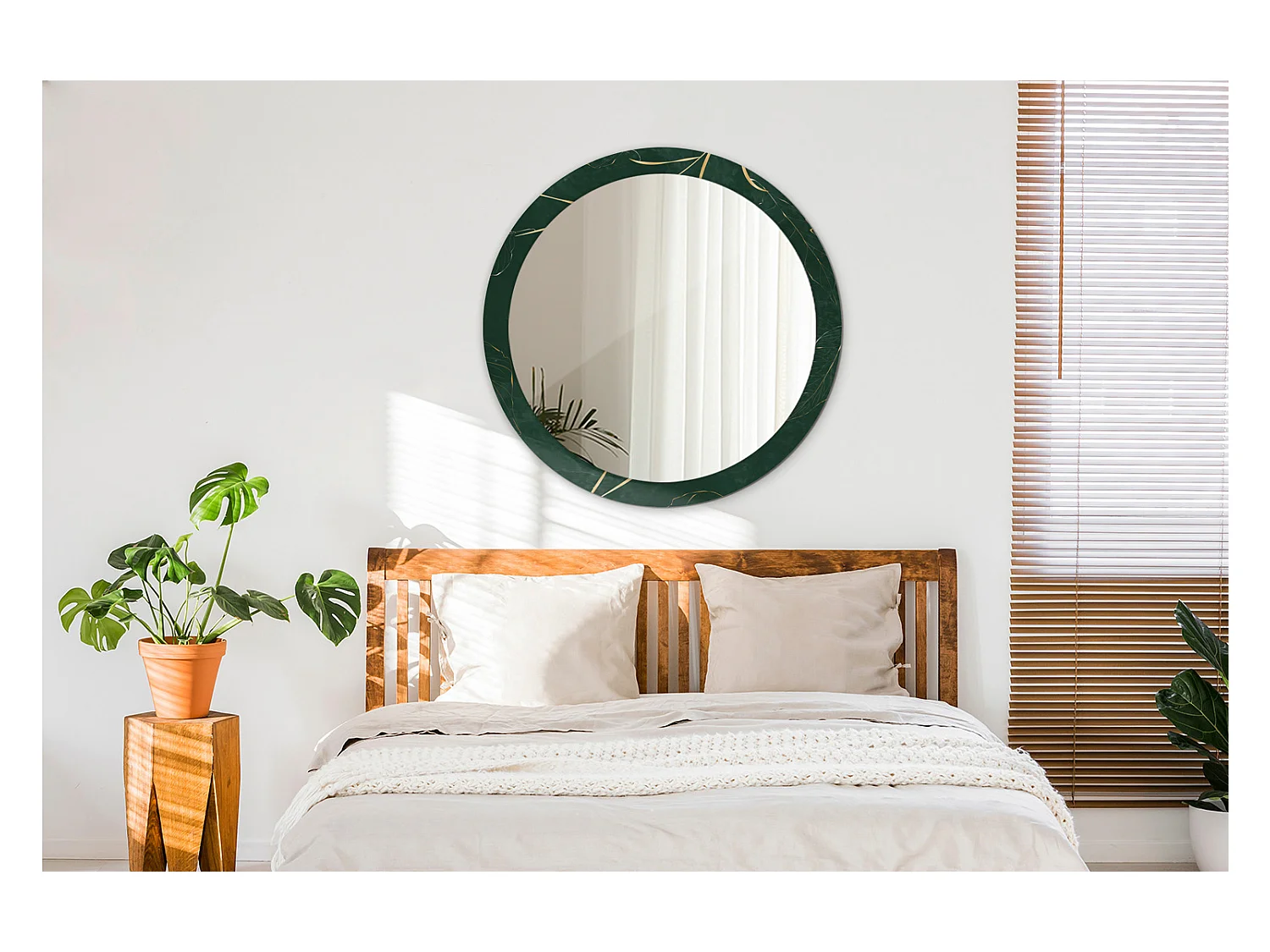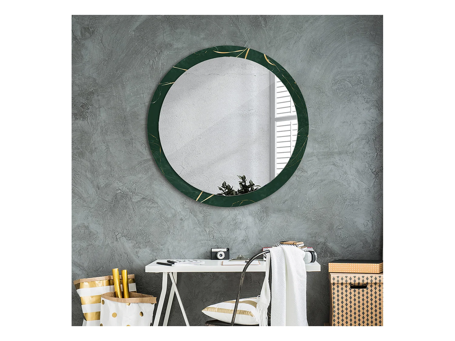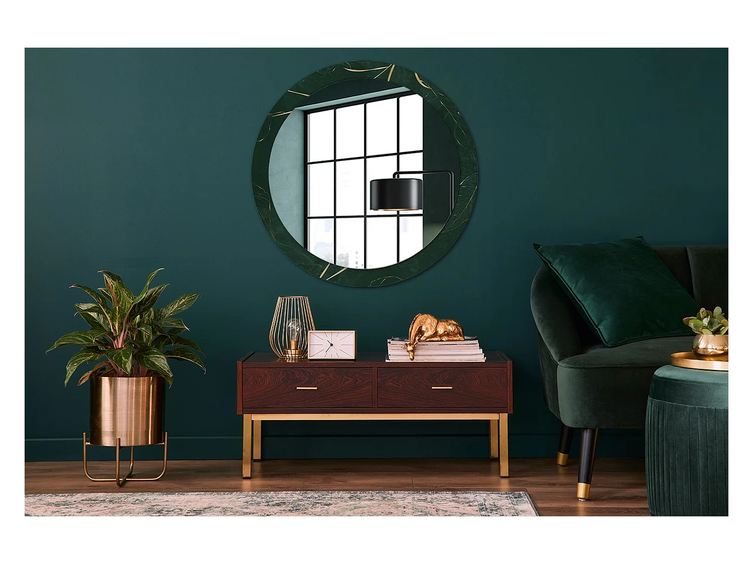 Miroir rond décoratif - Contour feuilles - 90 cm
