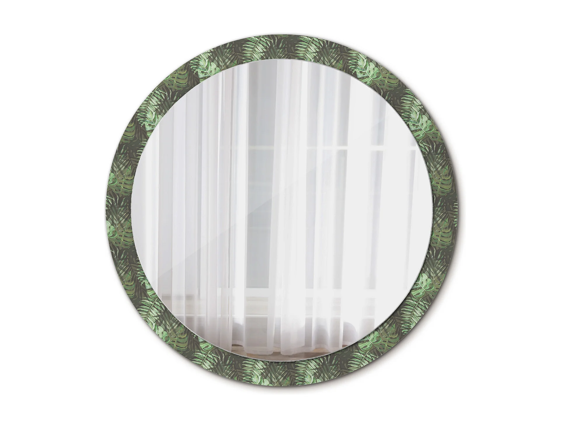 Miroir rond décoratif - Feuilles tropicales - 100 cm