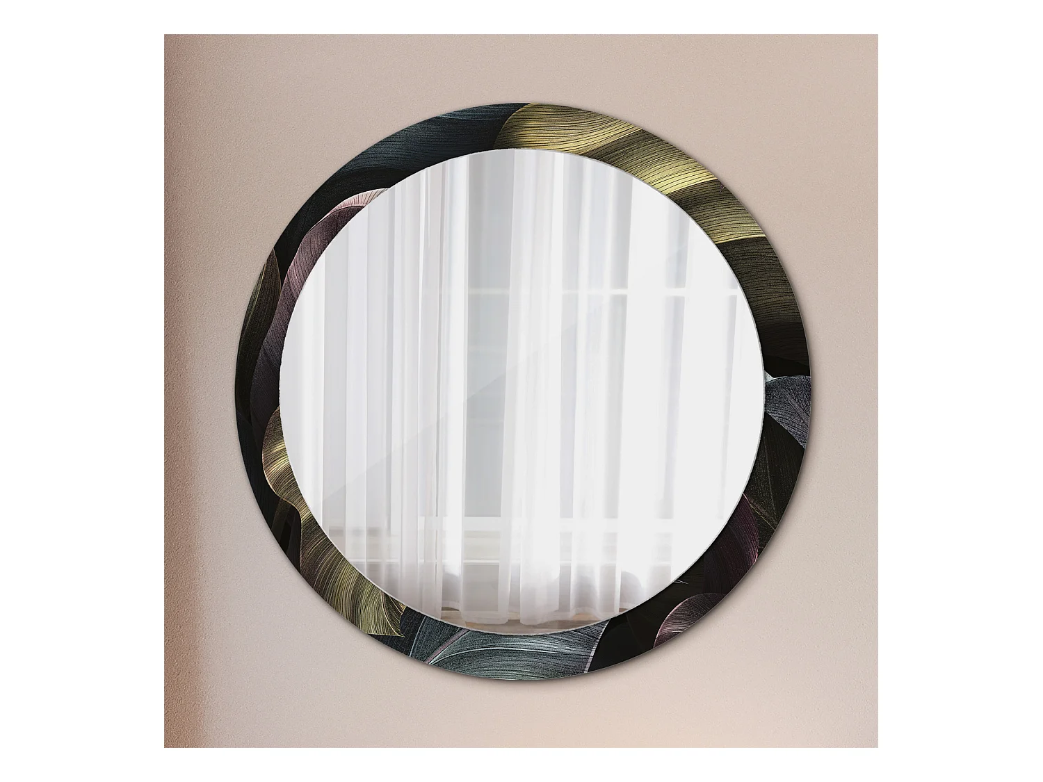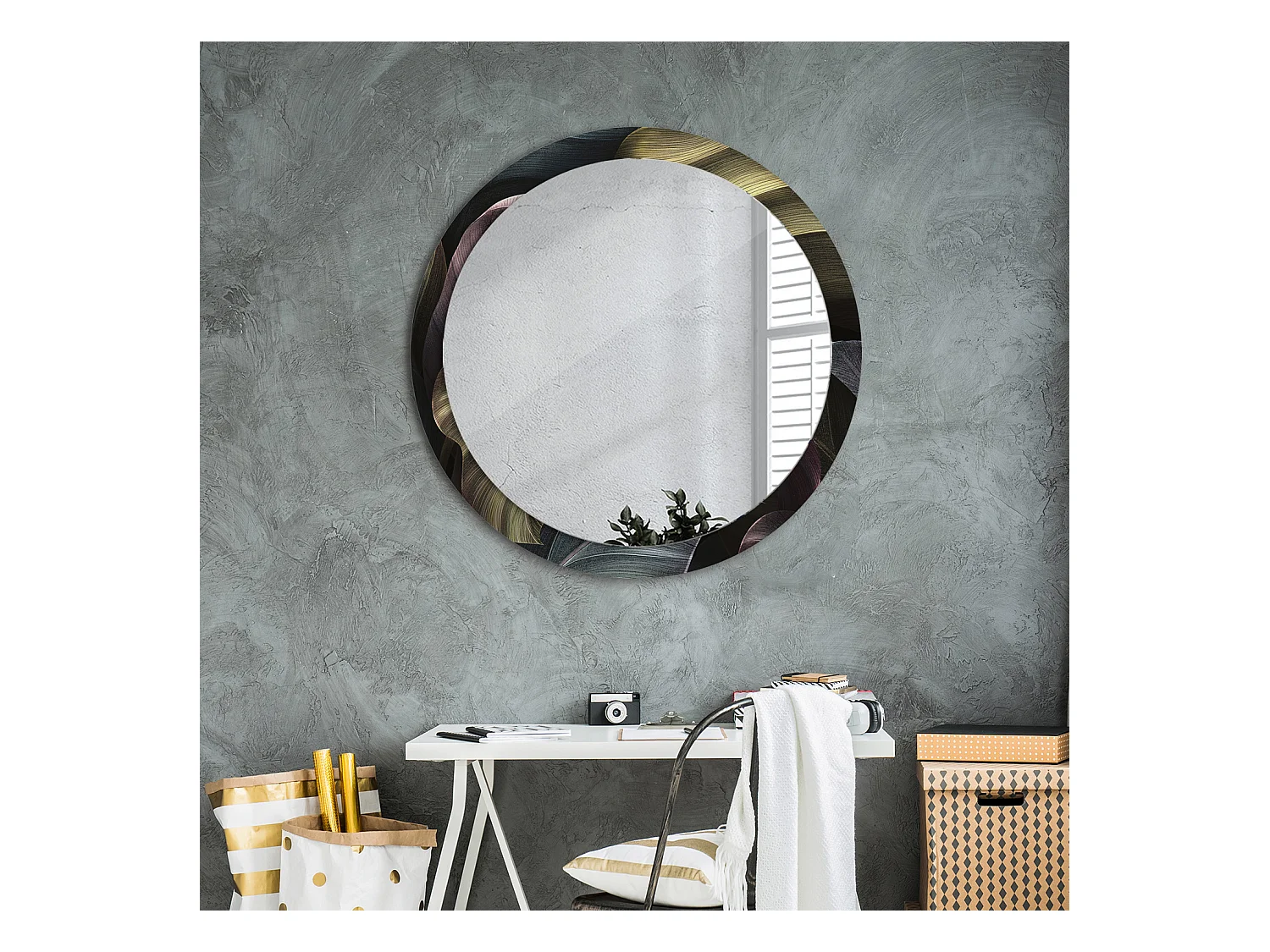 Miroir rond décoratif - Feuilles tropicales foncées - 90 cm